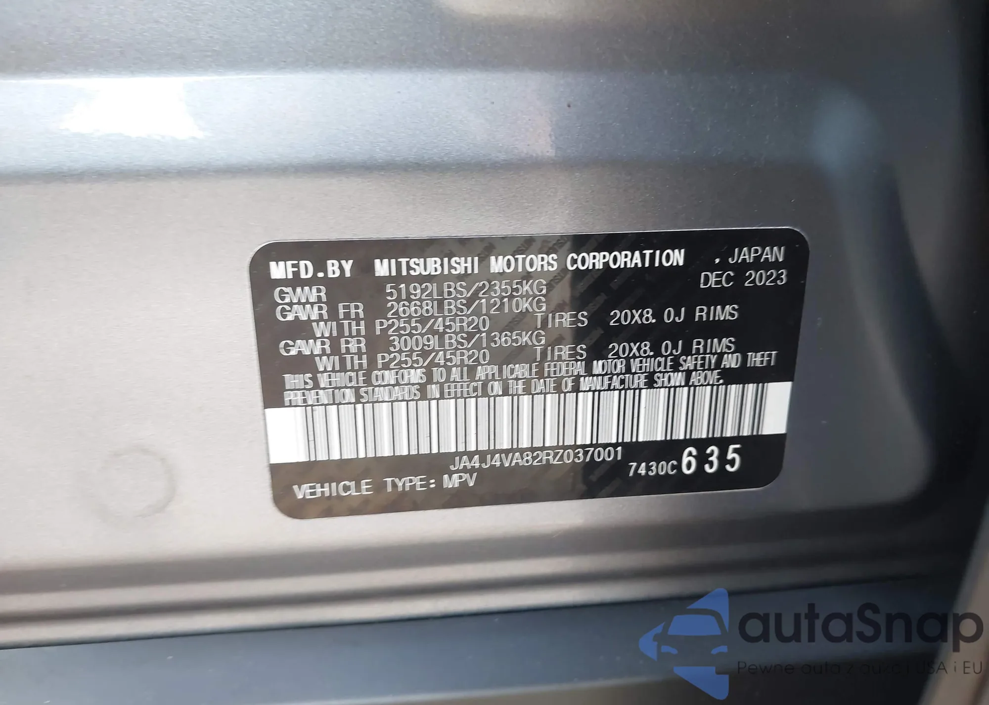 • VIN JA4J4VA82RZ037001