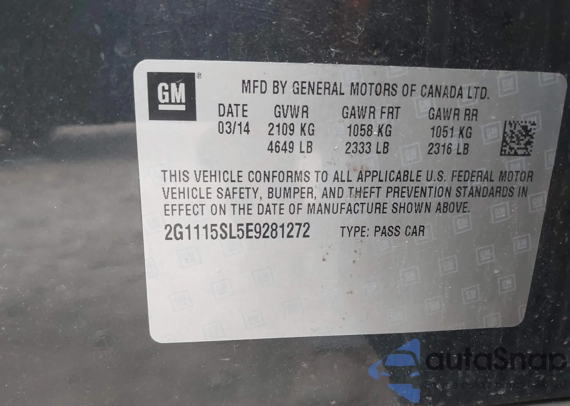 • VIN 2G1115SL5E9281272