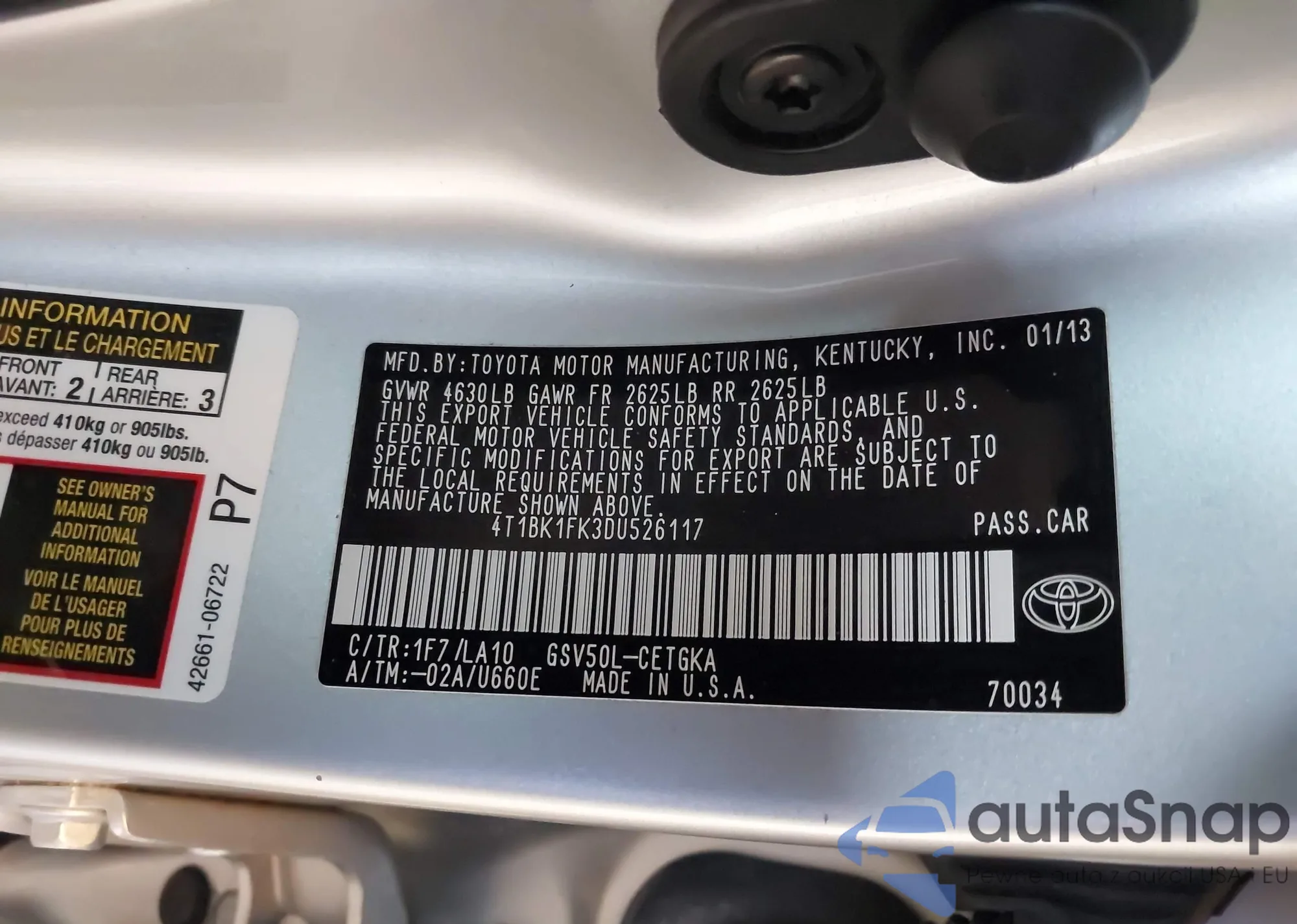 • VIN 4T1BK1FK3DU526117