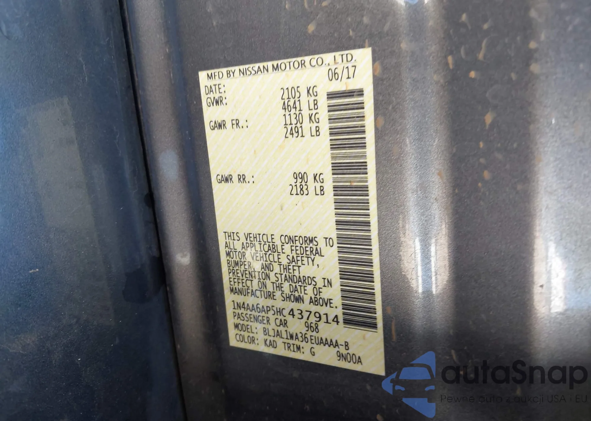 LOT: 43320643 VIN: 5N1AZ2MHXFN204320