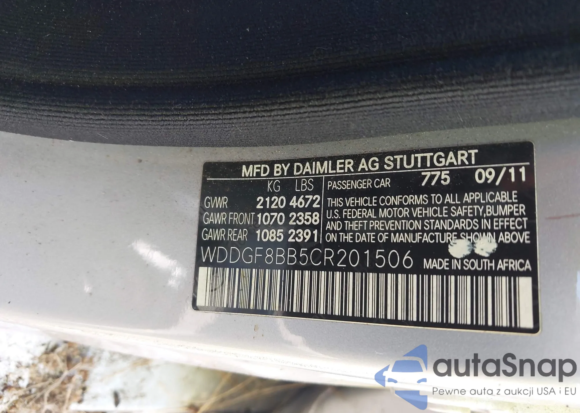 LOT: 43301286 VIN: WDDGF8BB5CR201506