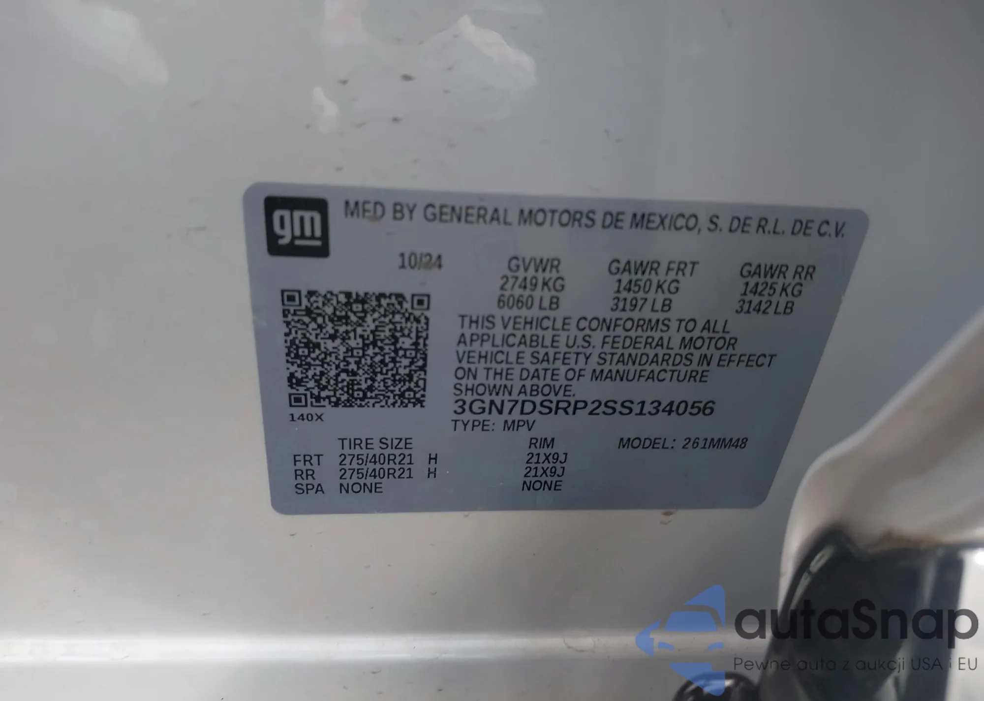LOT: 43366564 VIN: 3GN7DSRP2SS134056