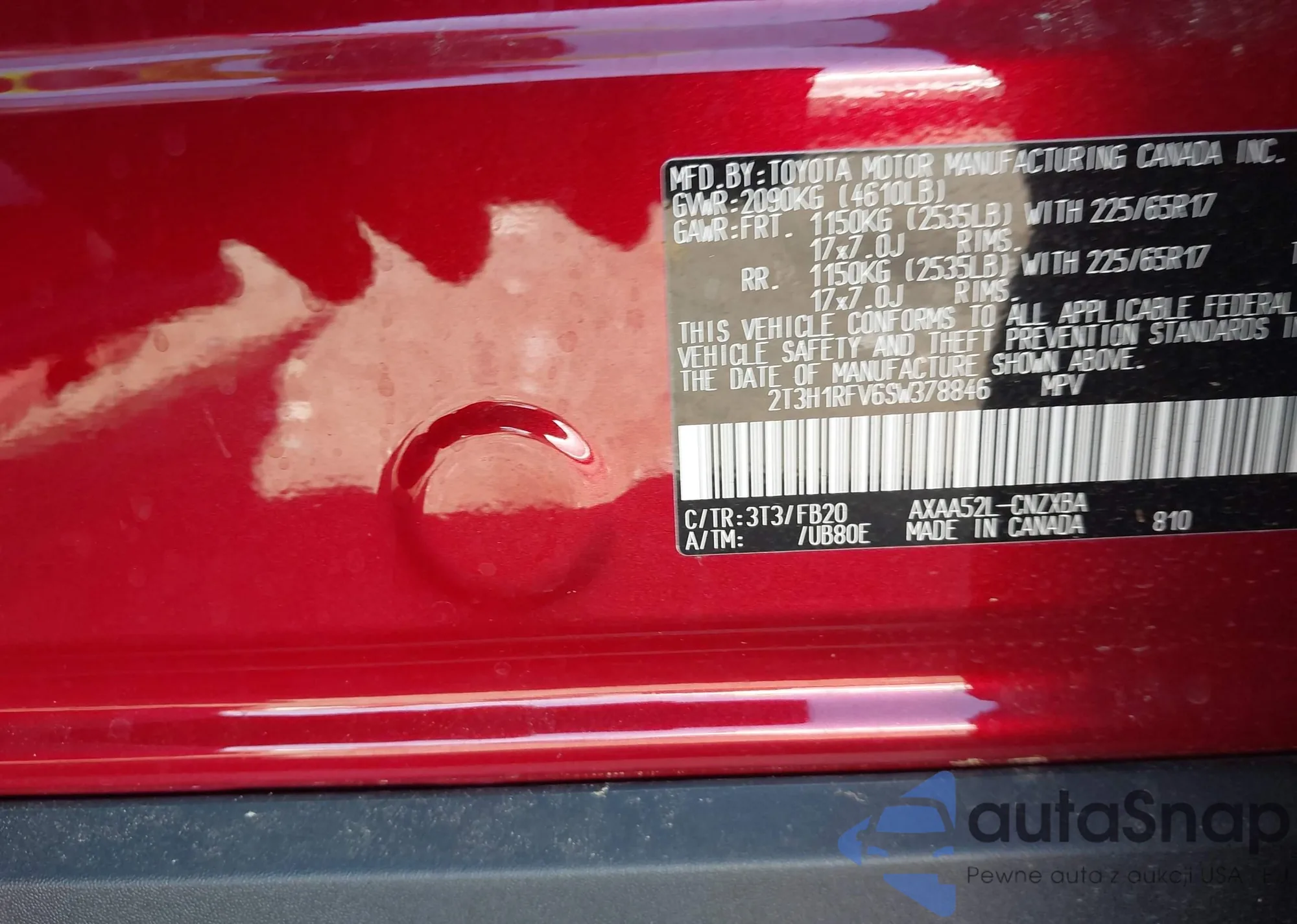 LOT: 43564663 VIN: 1HGCP2F88AA078637