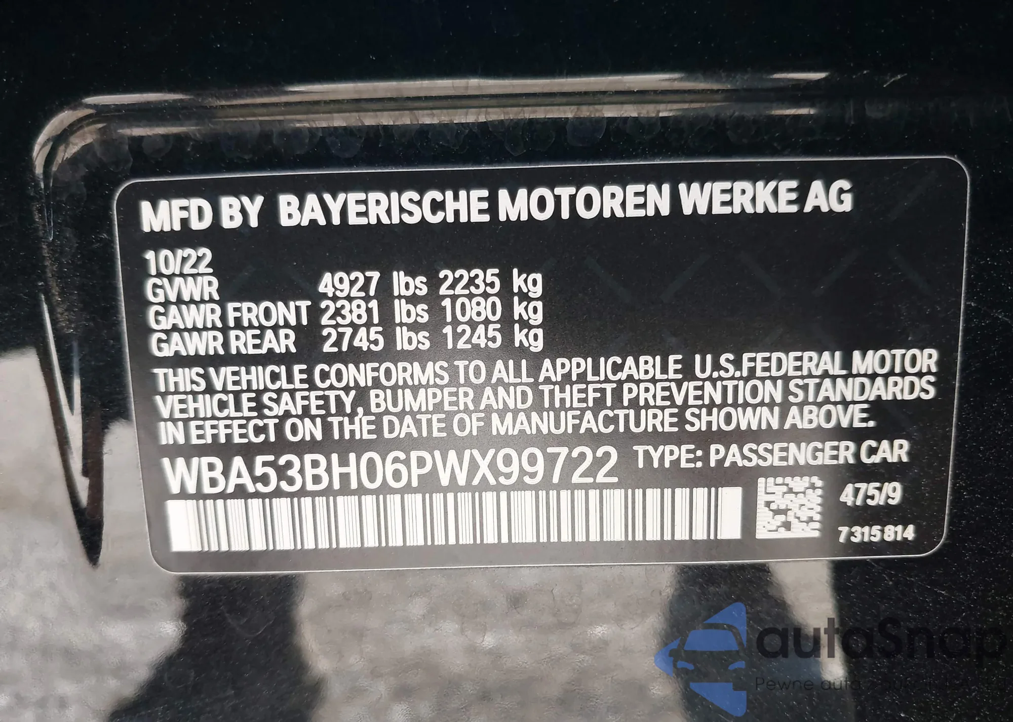 • VIN WBA53BH06PWX99722