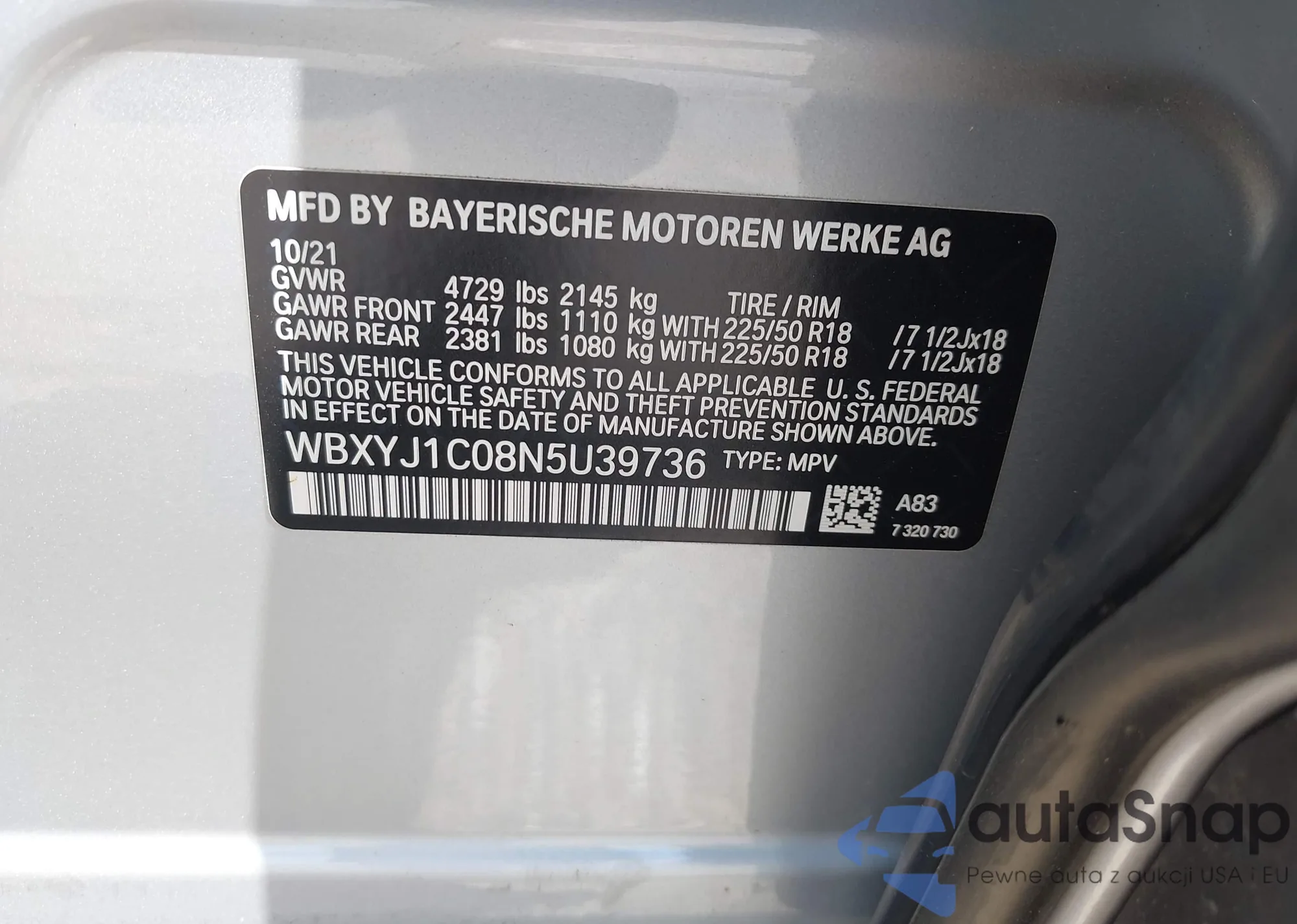 LOT: 43077448 VIN: WBXYJ1C08N5U39736