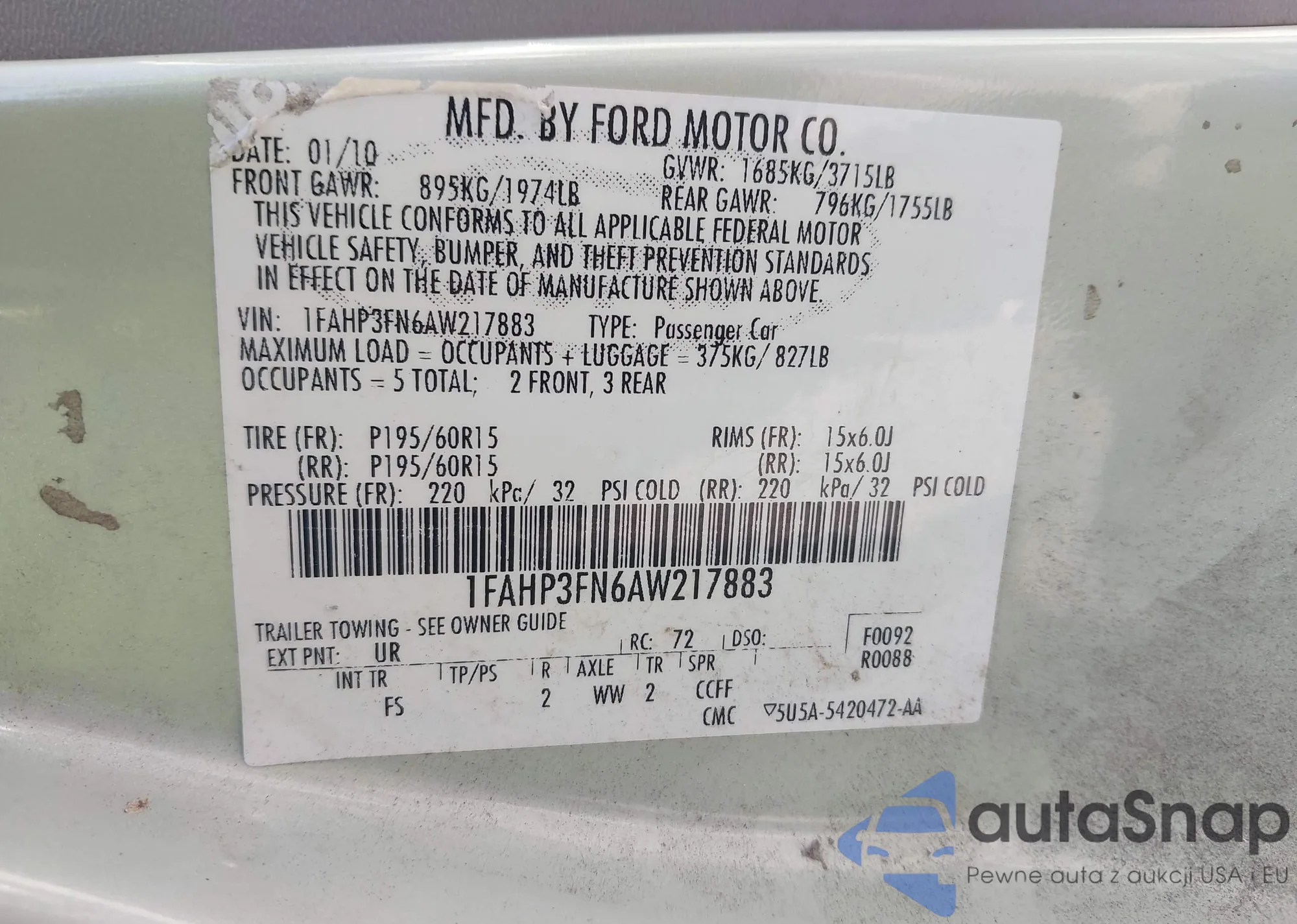 • VIN 1FAHP3FN6AW217883