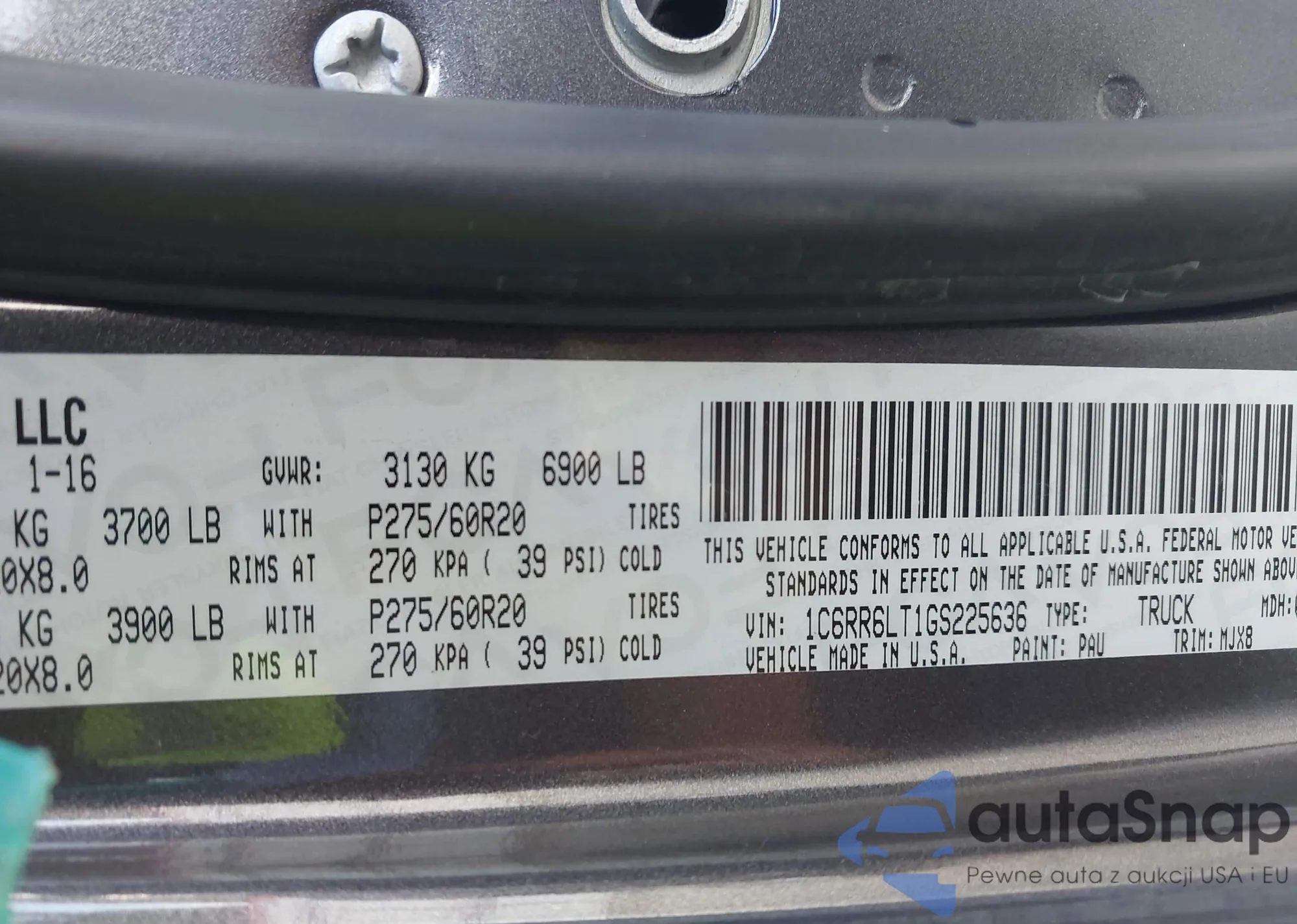 • VIN 1C6RR6LT1GS225636