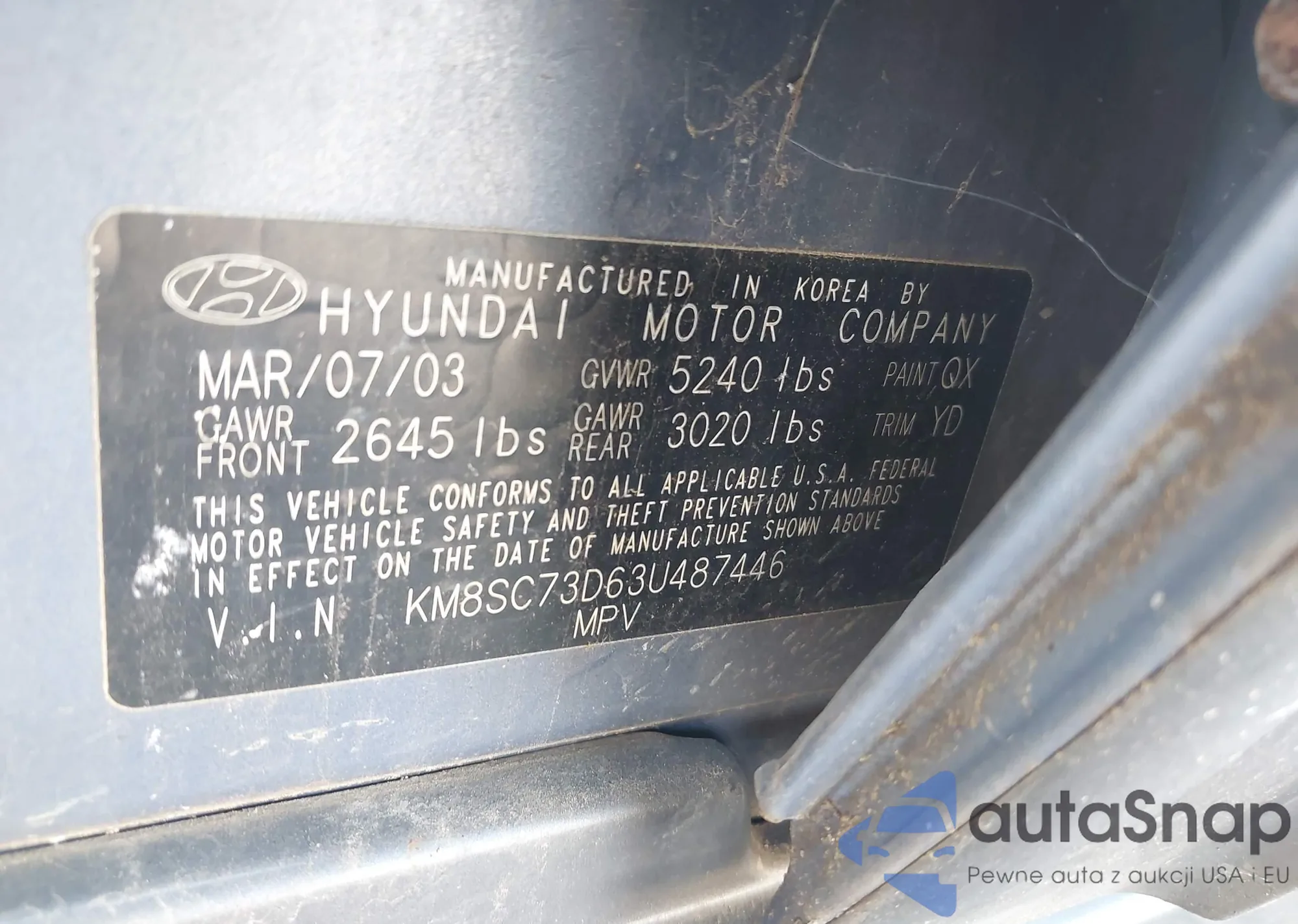 • VIN KM8SC73D63U487446