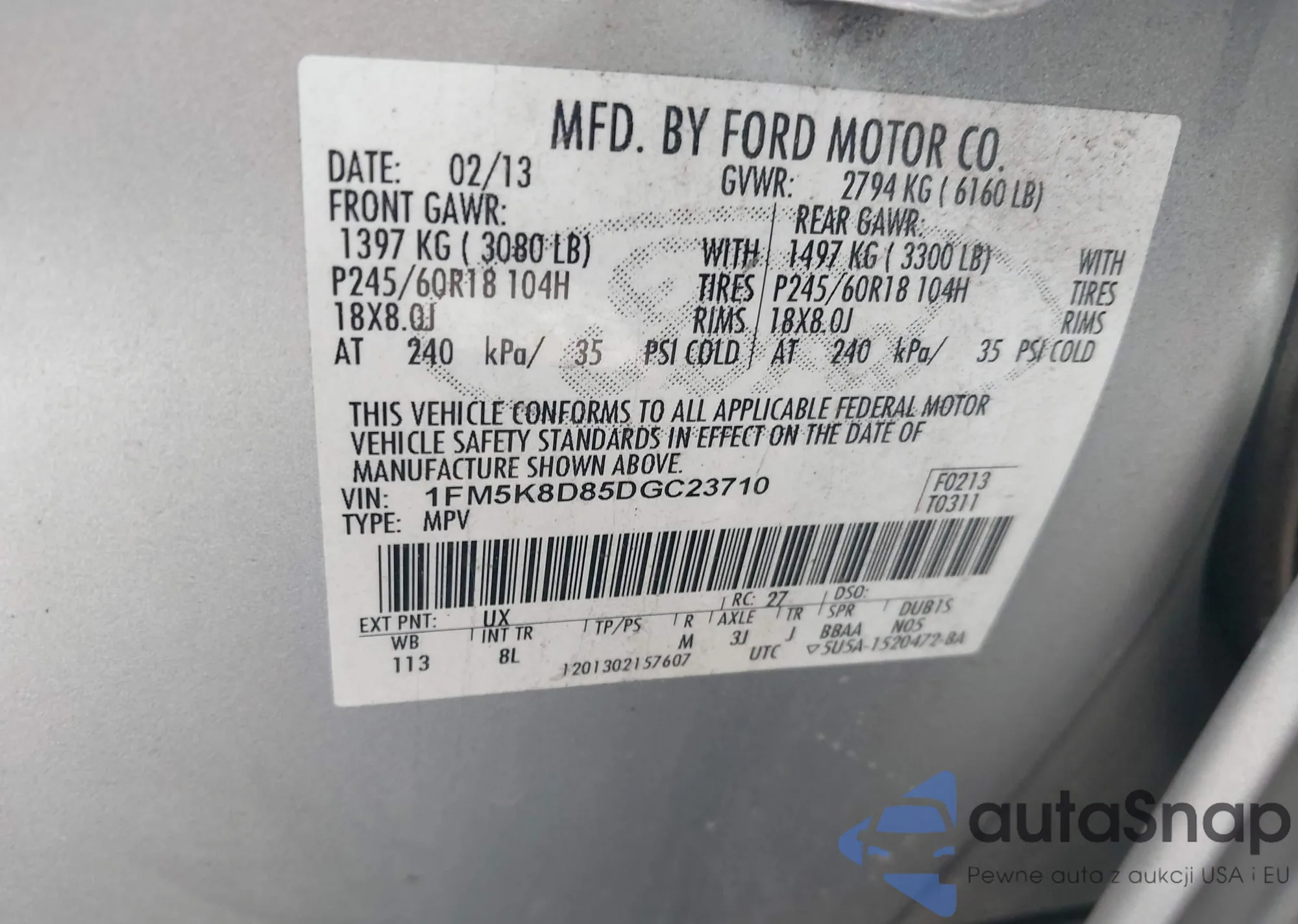 • VIN 1FM5K8D85DGC23710
