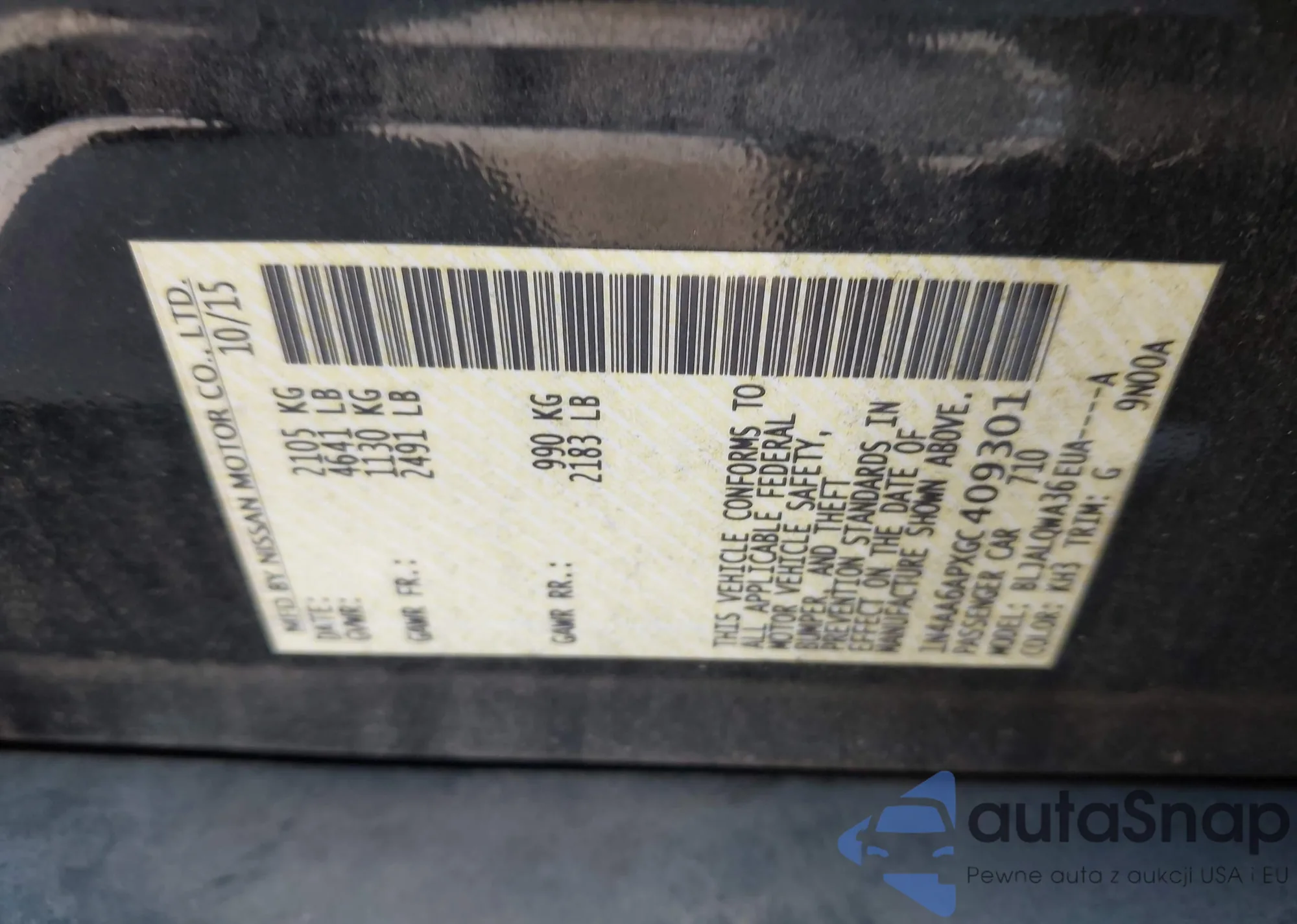 • VIN 1N4AA6APXGC409301