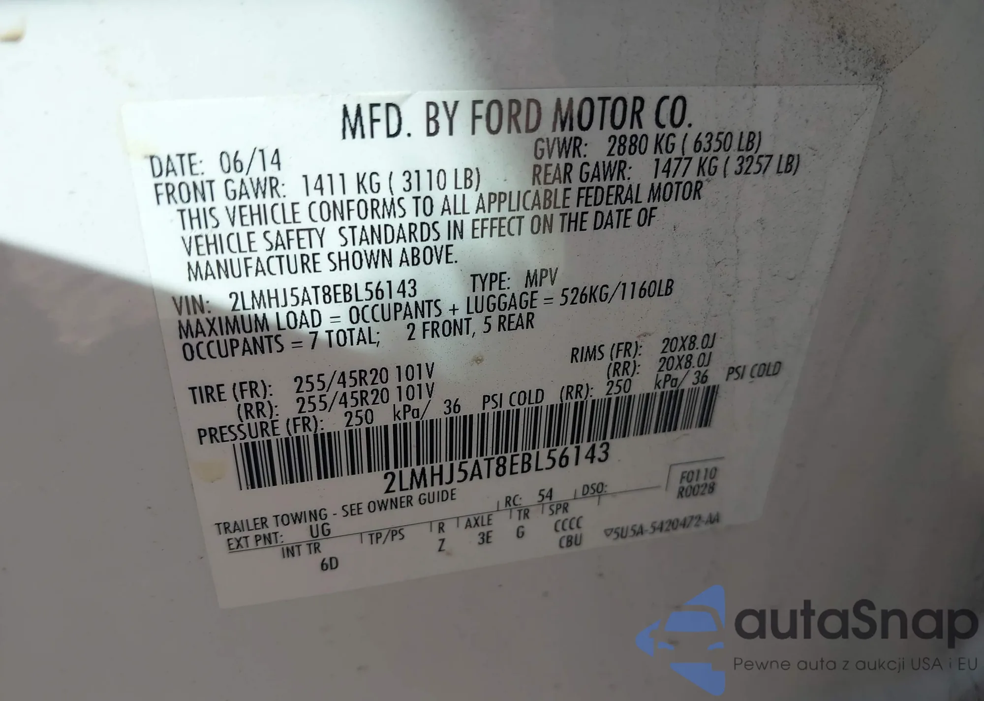 LOT: 43597741 VIN: 1FADP5CU5FL104828