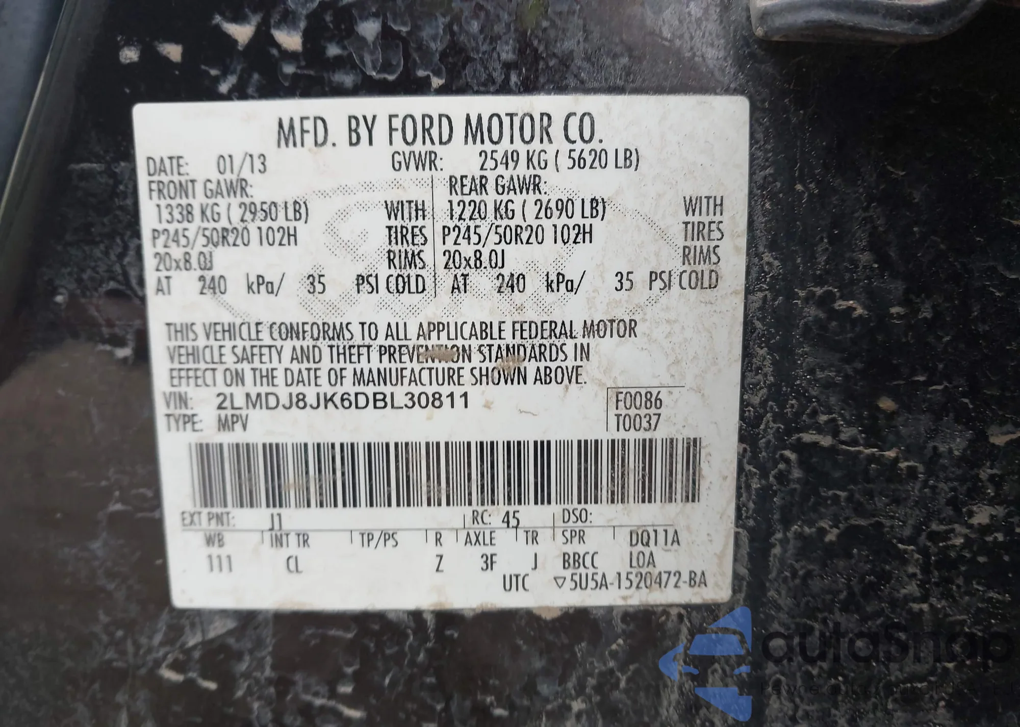 • VIN 2LMDJ8JK6DBL30811