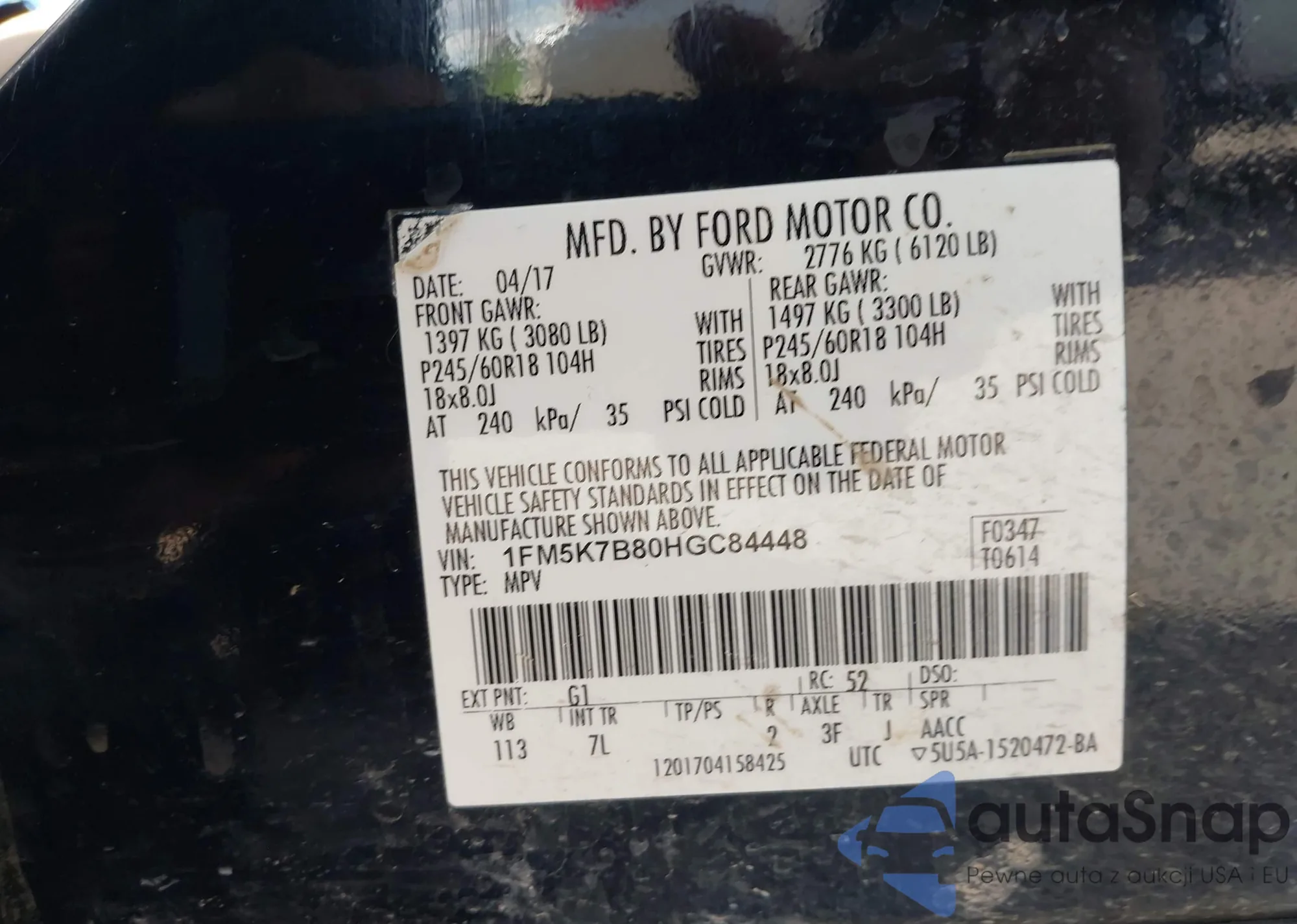 • VIN WBAFR7C58DC820120