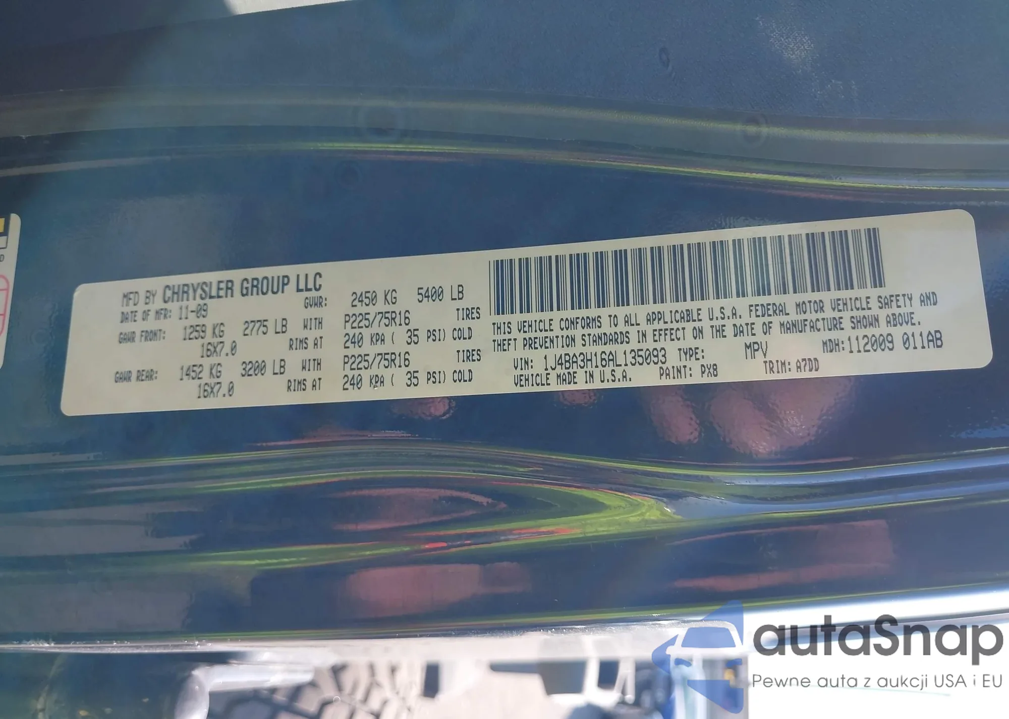 • VIN 1J4BA3H16AL135093