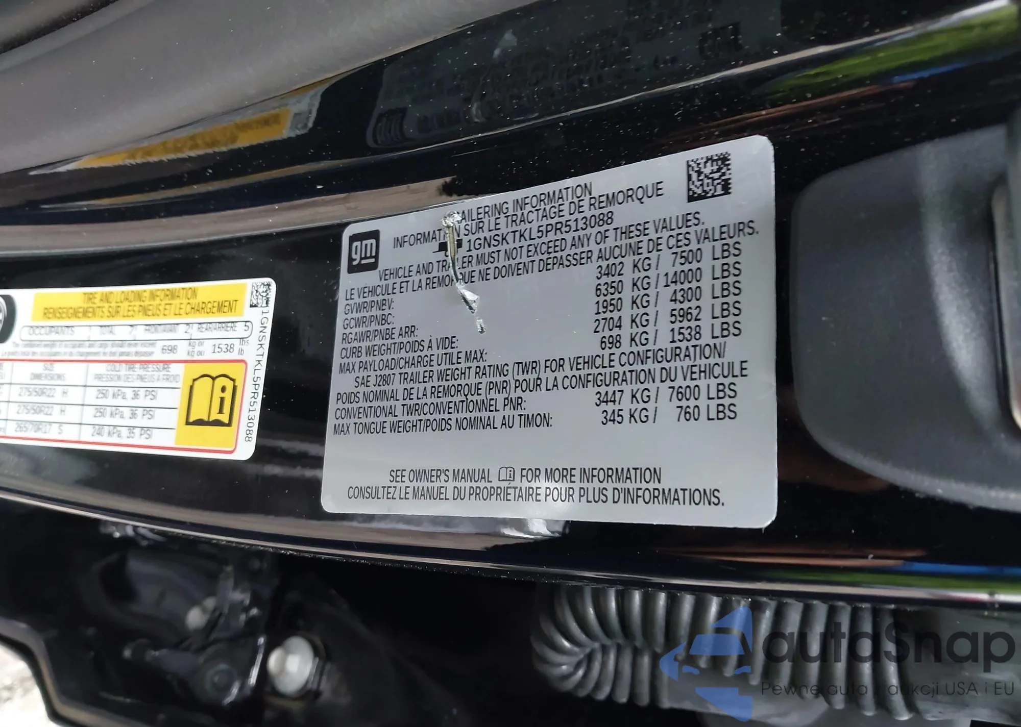 LOT: 43371873 VIN: 1GNSKTKL5PR513088