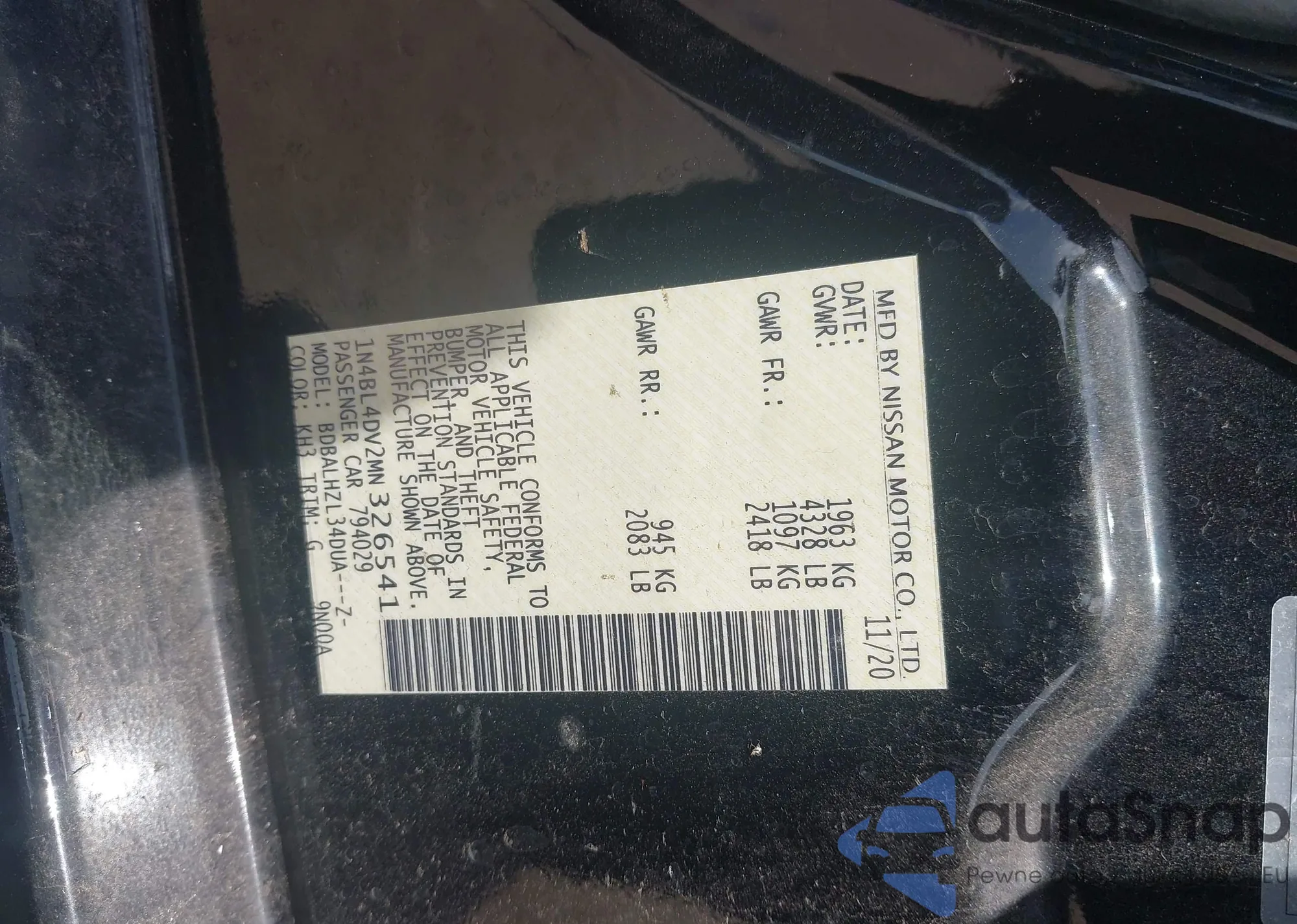 LOT: 43103443 VIN: 1N4BL4DV2MN326541