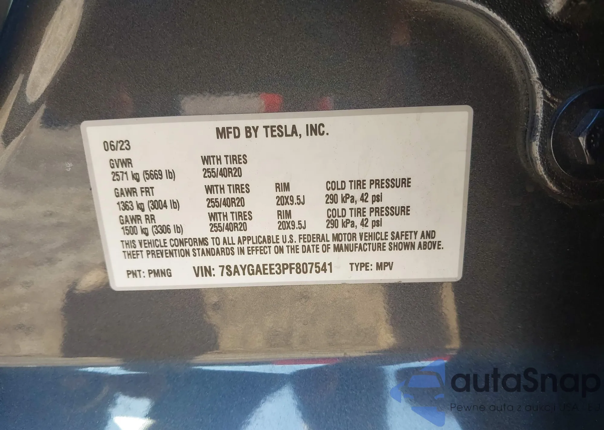 • VIN 7SAYGAEE3PF807541