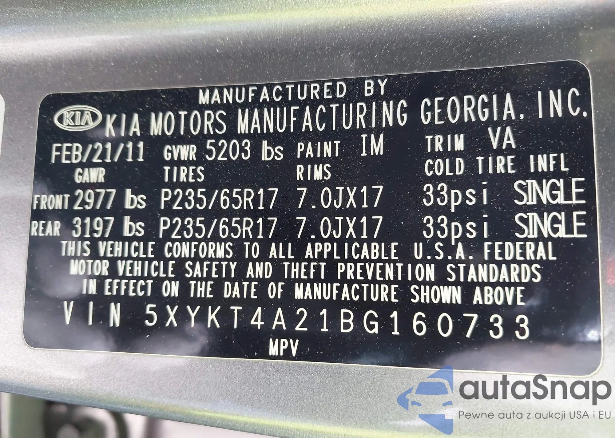 LOT: 43486141 VIN: 5XYKT4A21BG160733