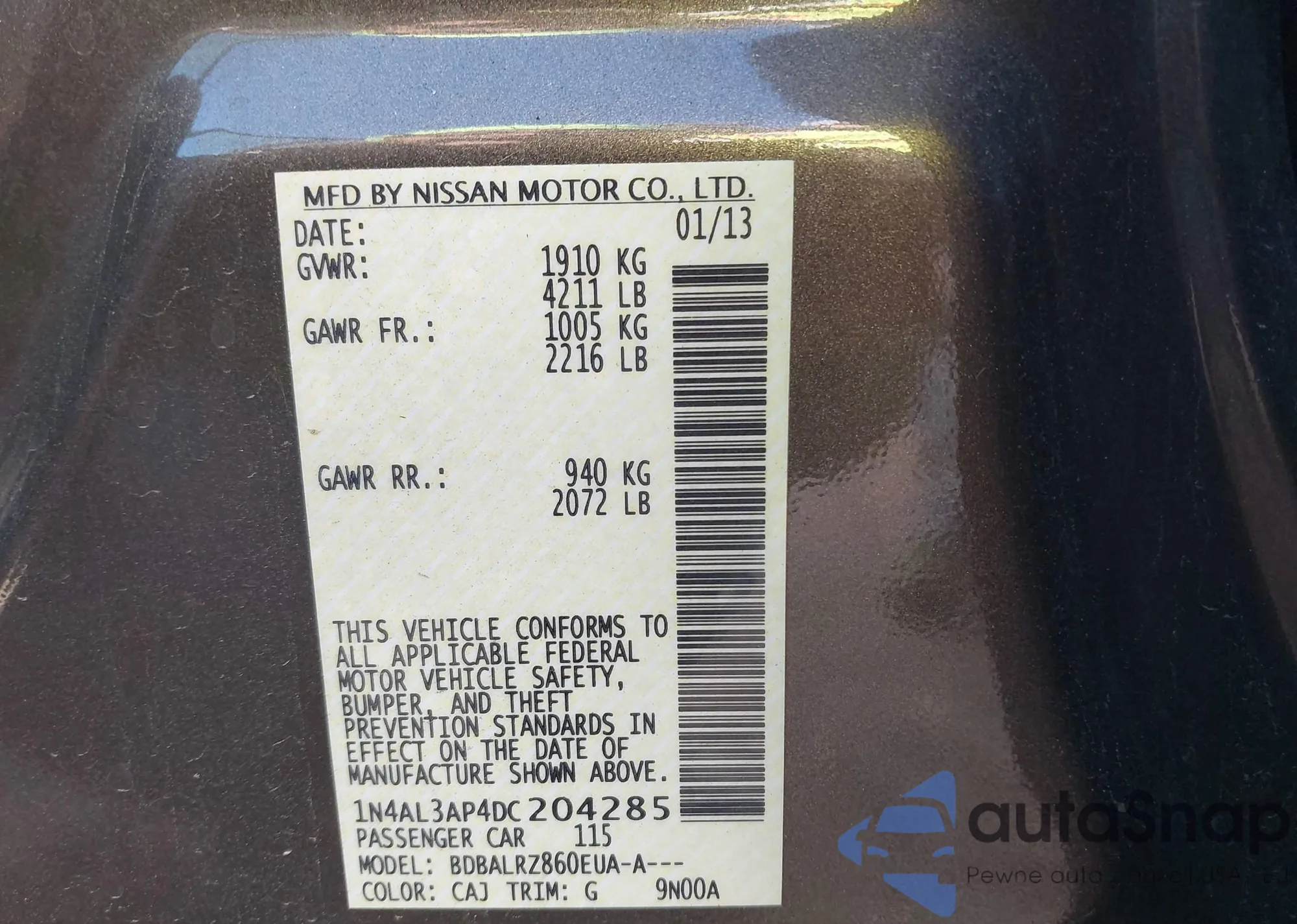 • VIN 1N4AL3AP4DC204285