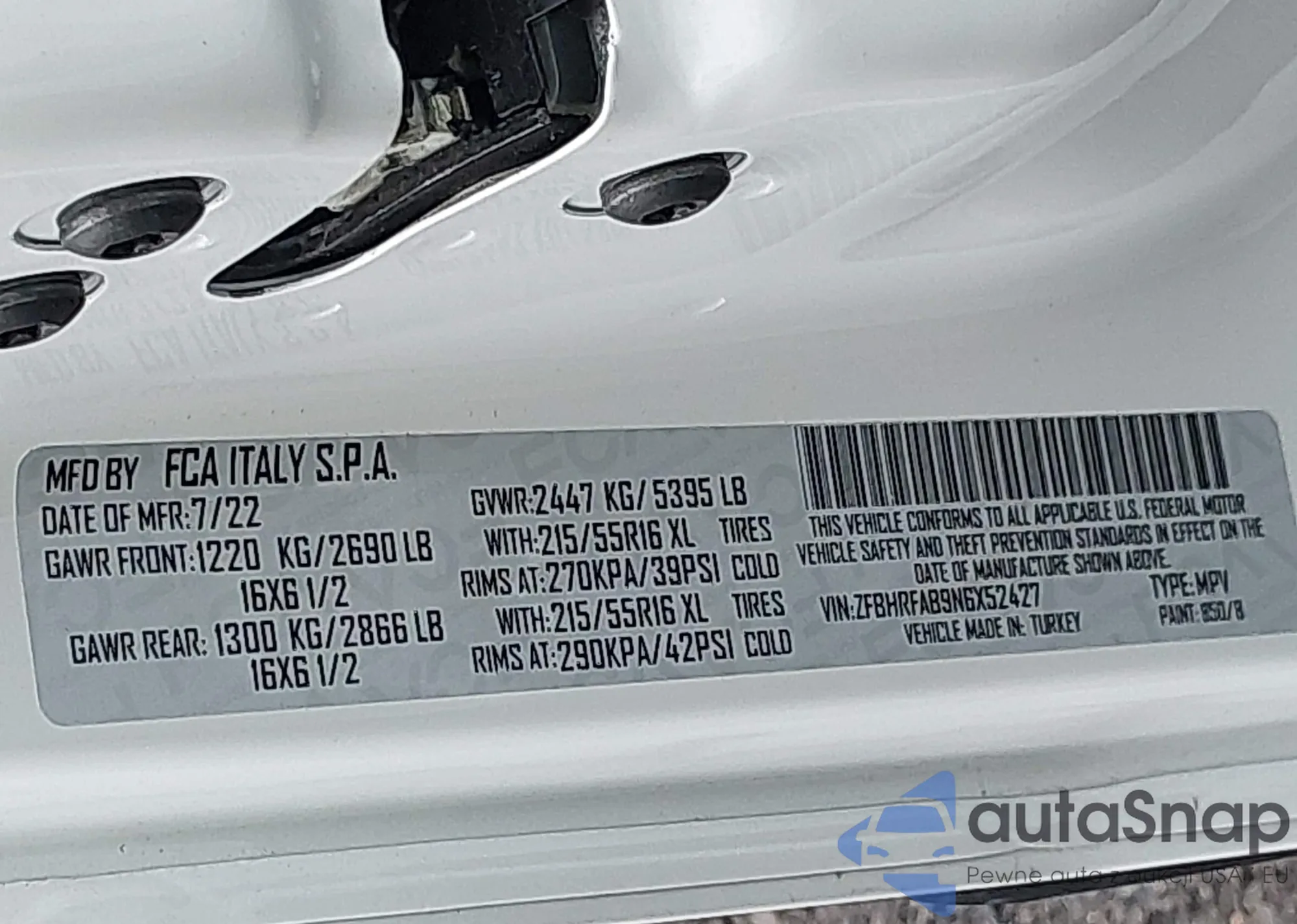 • VIN ZFBHRFAB9N6X52427