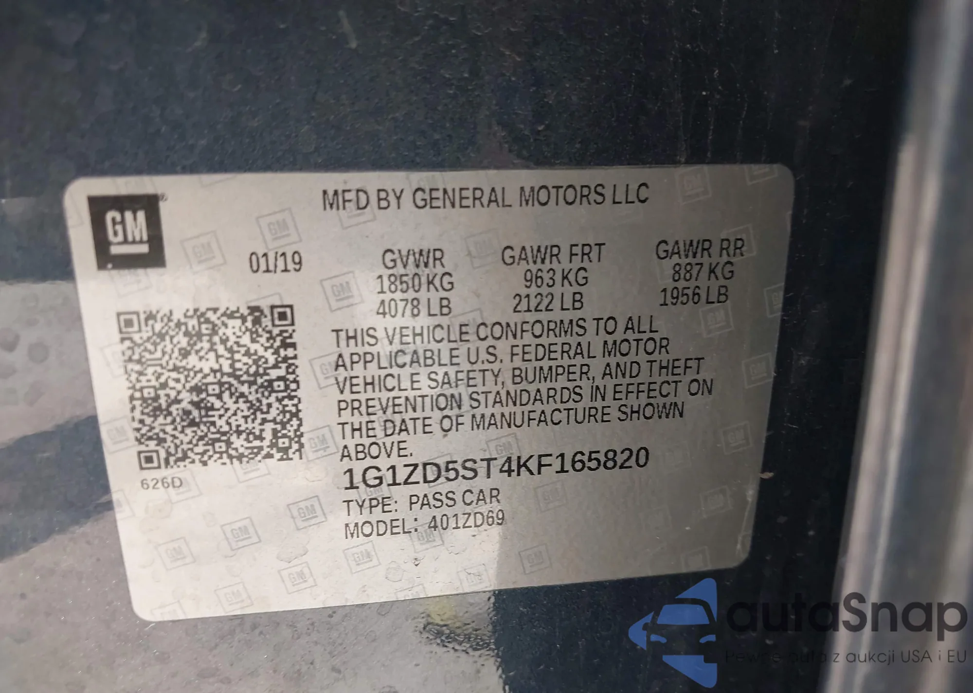 LOT: 43185051 VIN: 1G1ZD5ST4KF165820