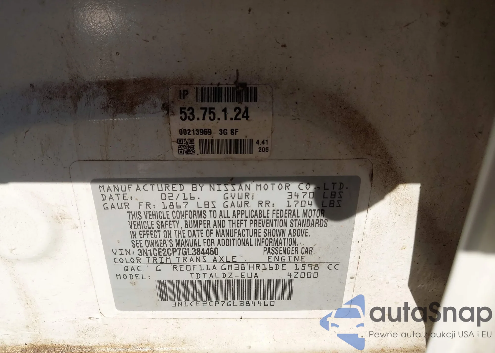 • VIN 3N1CE2CP7GL384460