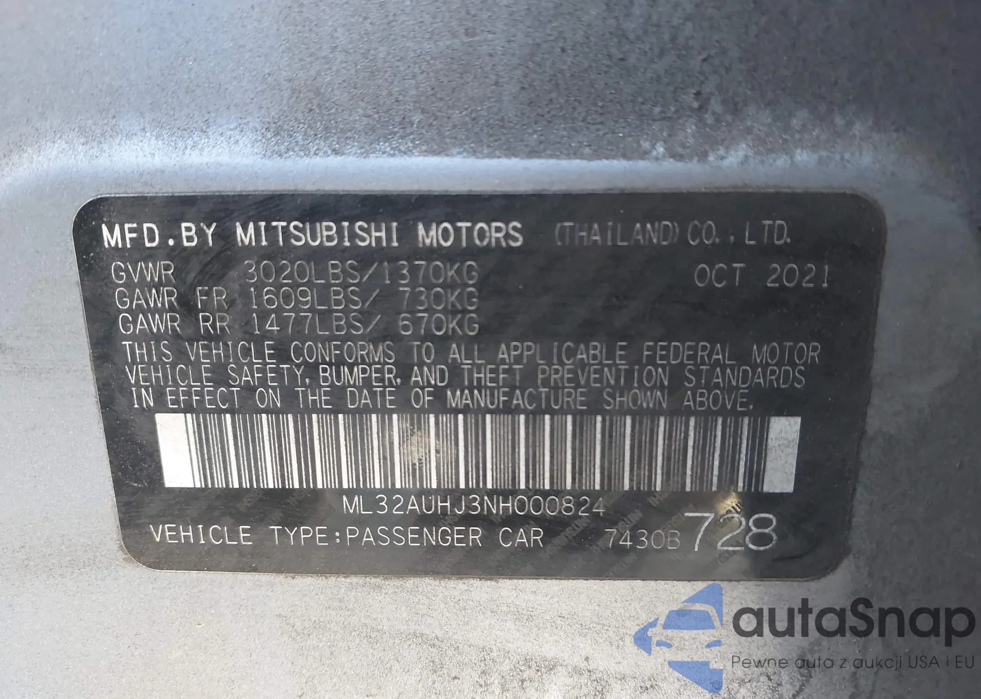 LOT: 43211315 VIN: 19XFA1F86AE027738