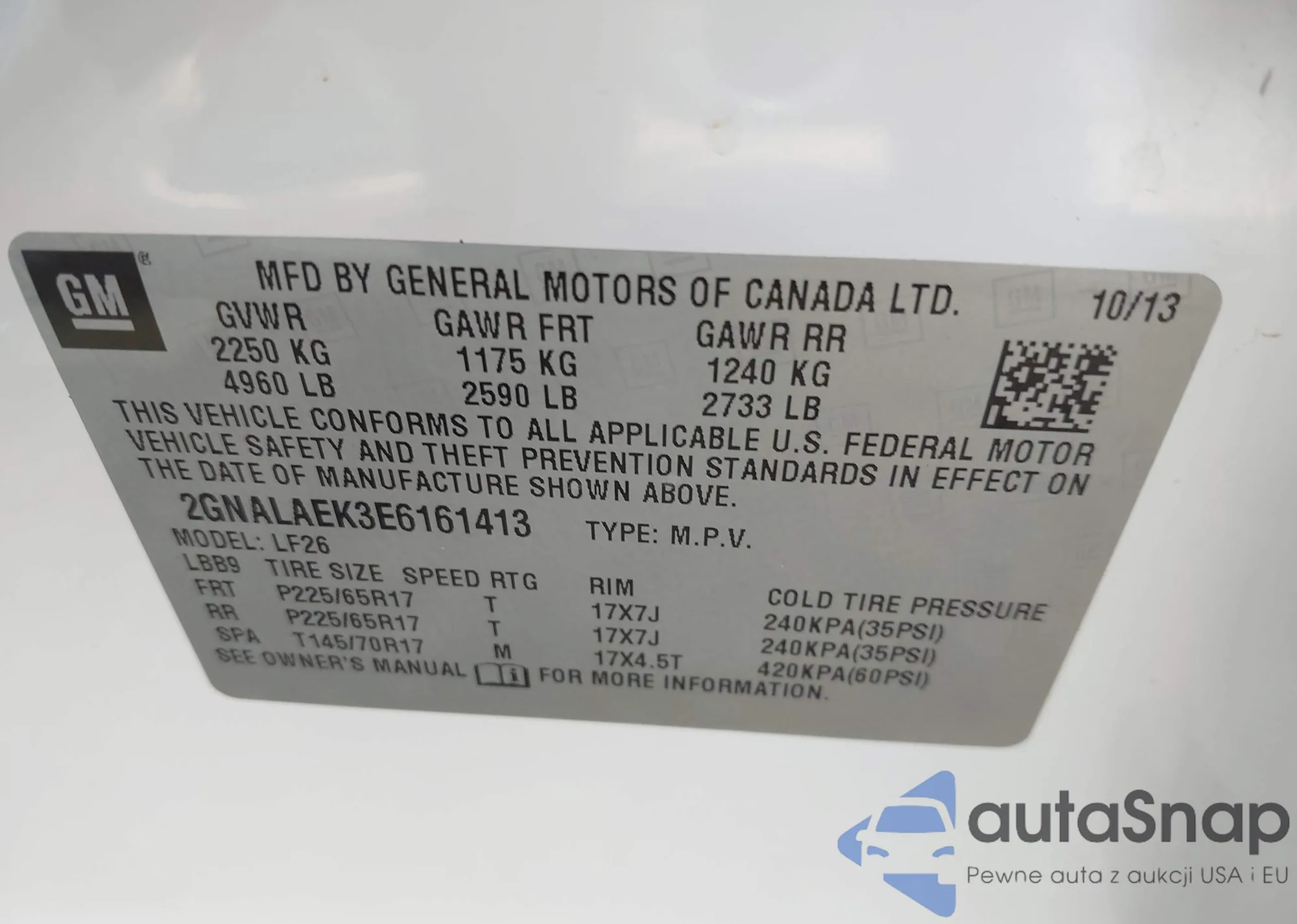 LOT: 43529054 VIN: 2GNALAEK3E6161413
