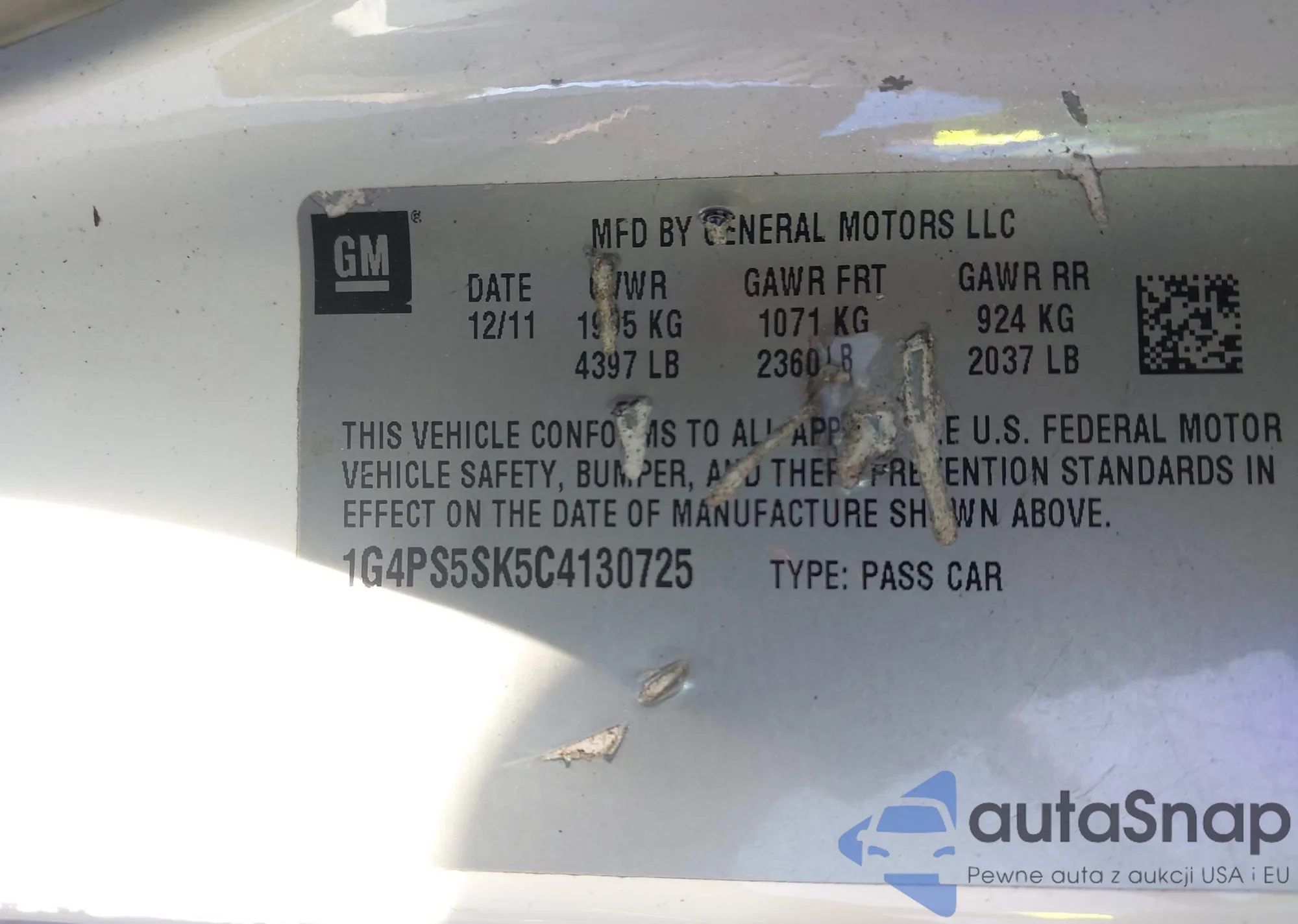 LOT: 43605755 VIN: 1G4PS5SK5C4130725