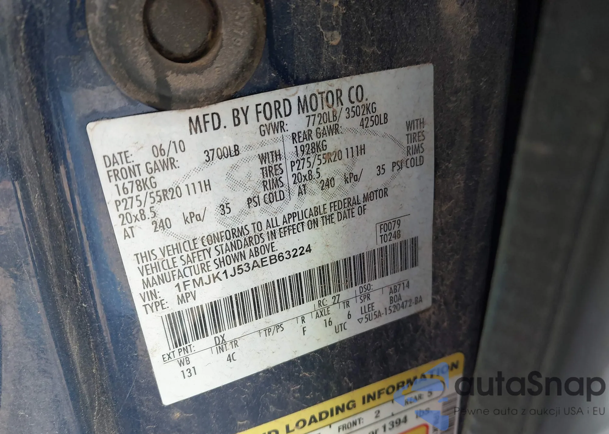 LOT: 43662870 VIN: 1FMJK1J53AEB63224
