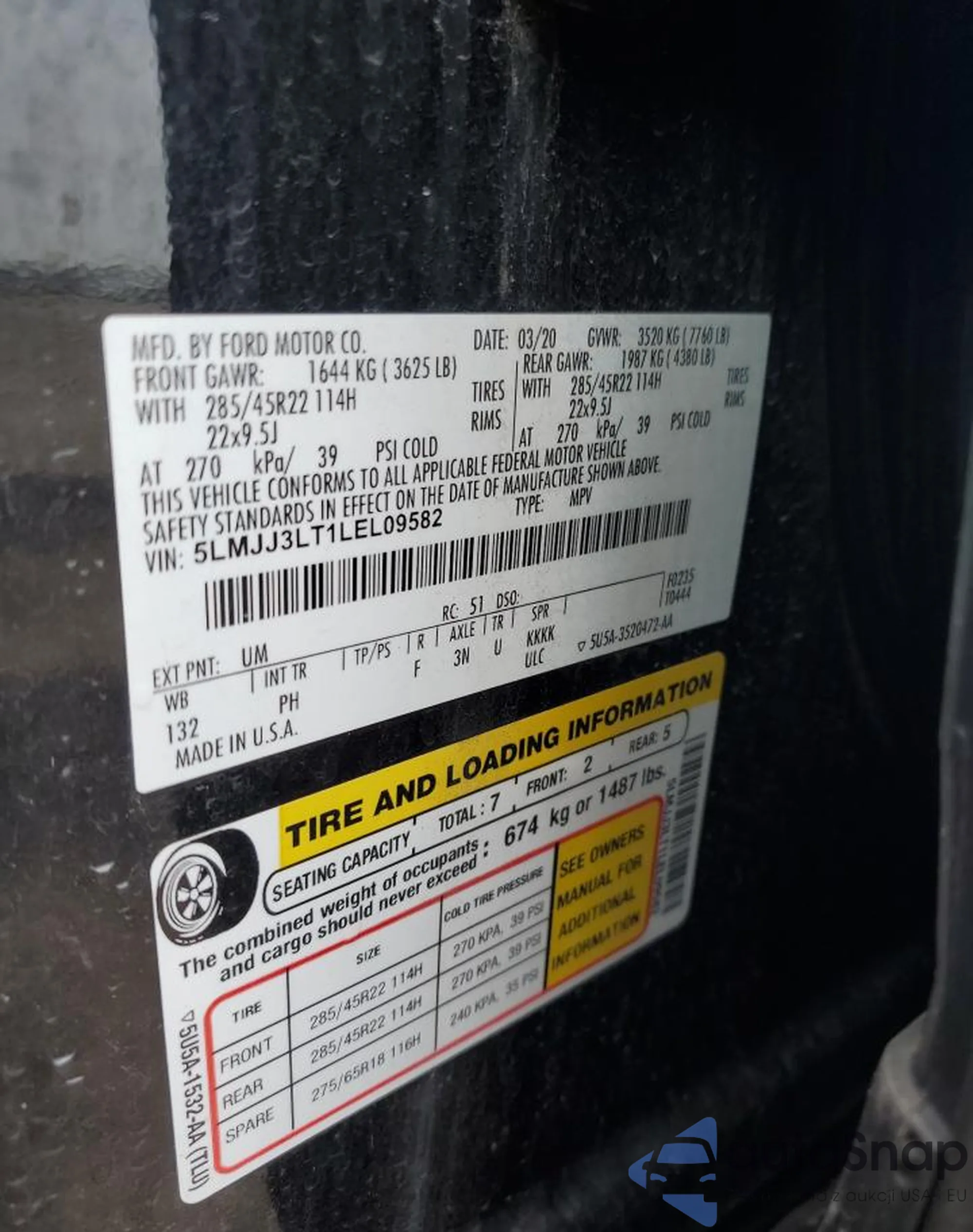 LOT: 90576545 VIN: 5UXTY5C01L9D07757