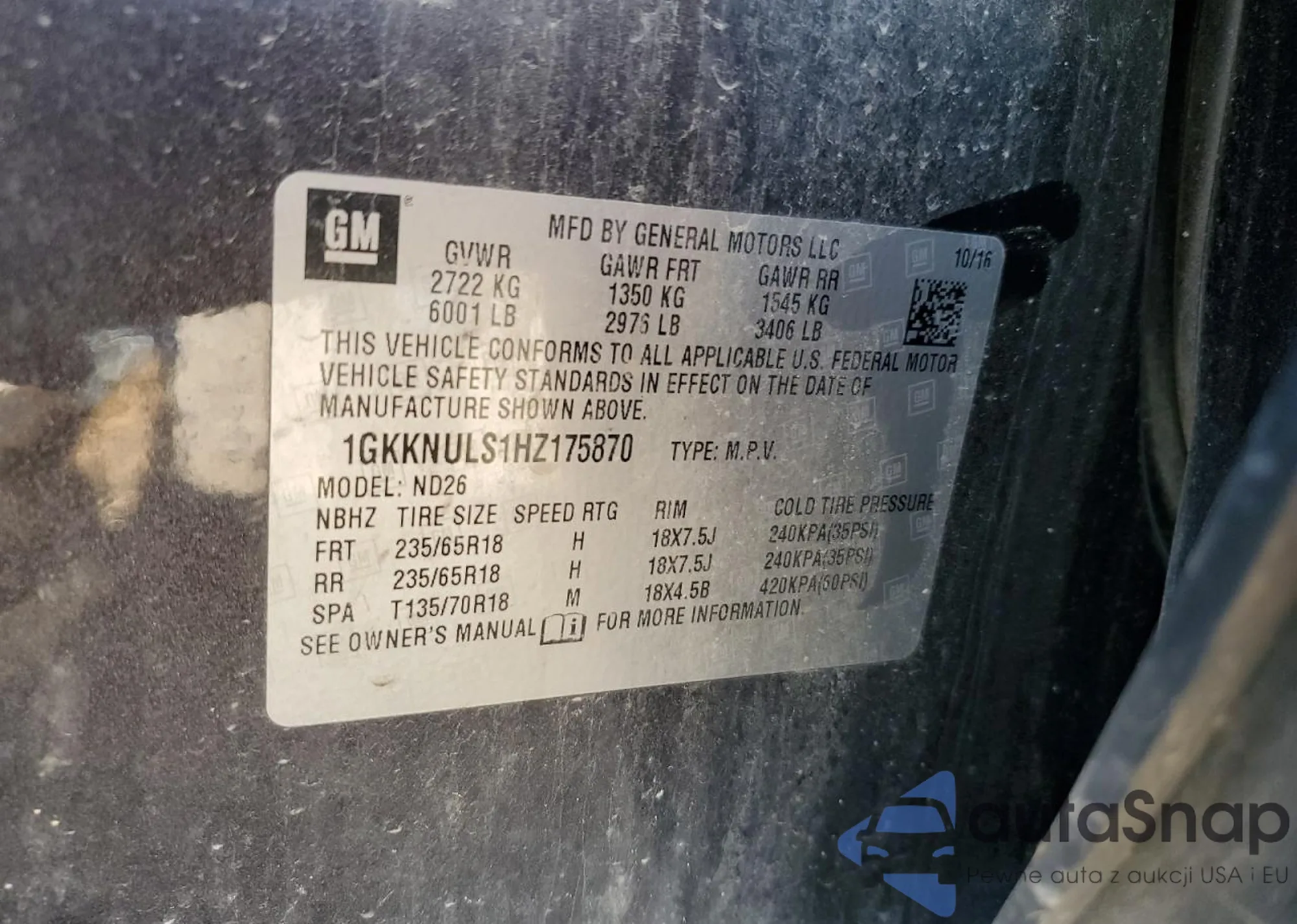 • VIN 1GKKVPED0BJ295570