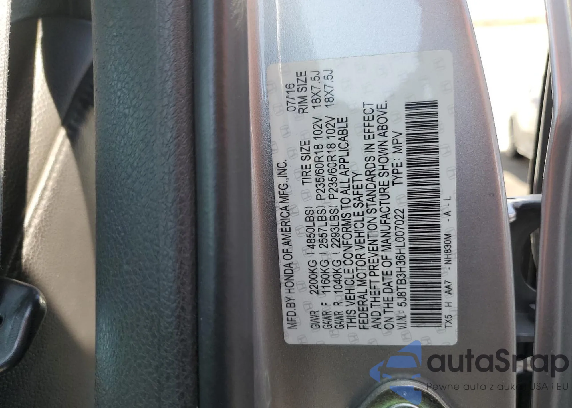 • VIN 5J8TB3H36HL007022