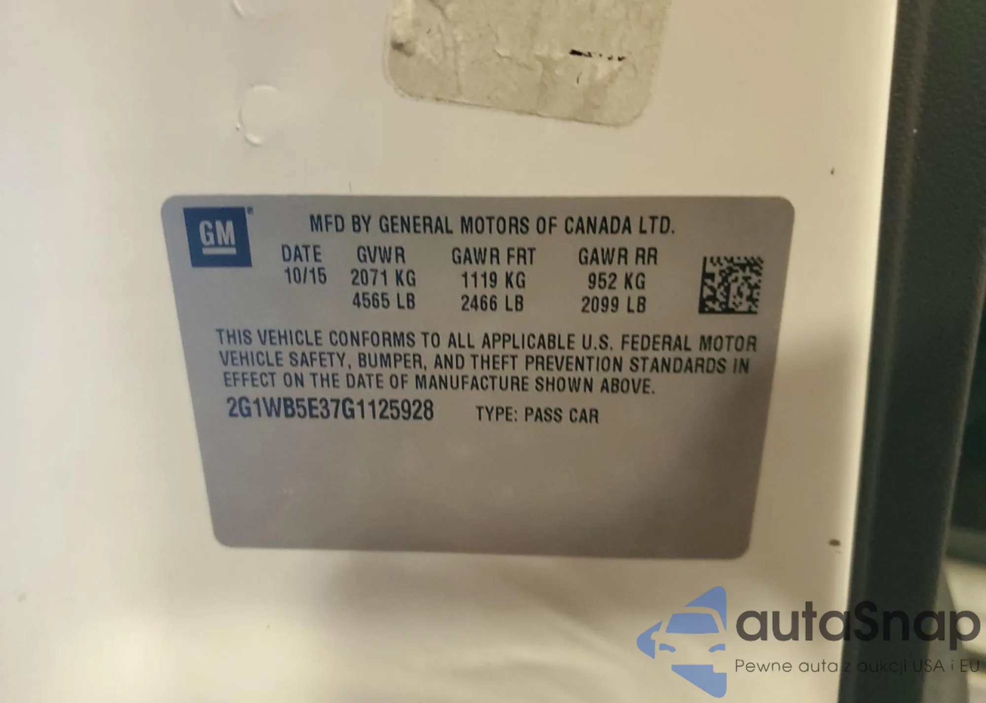 LOT: 91943775 VIN: 2G1WB5E37G1125928