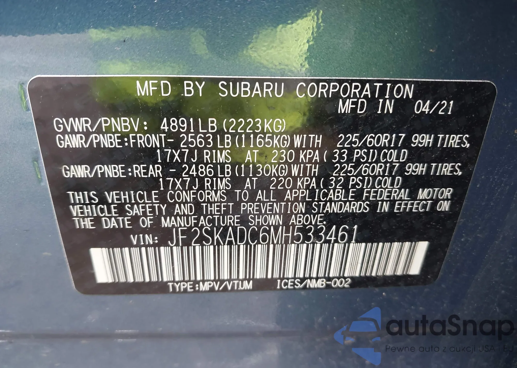 • VIN 4T3T6RFV6PU135024