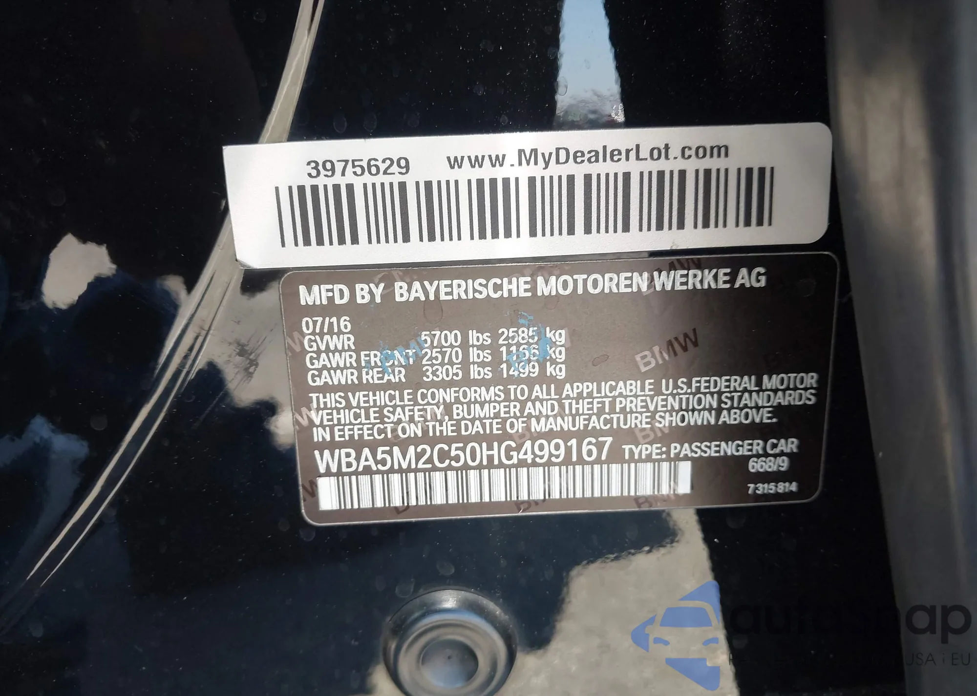 • VIN WBA5M2C50HG499167