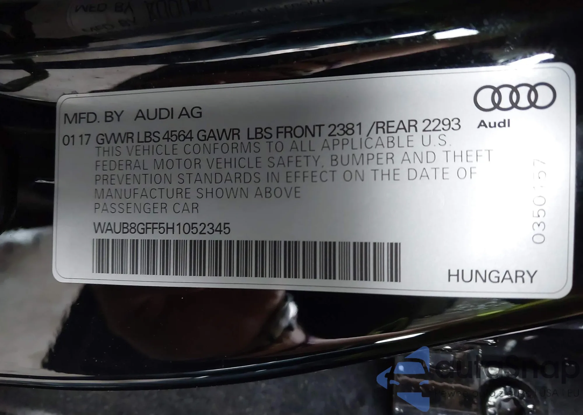 • VIN WAUB8GFF5H1052345