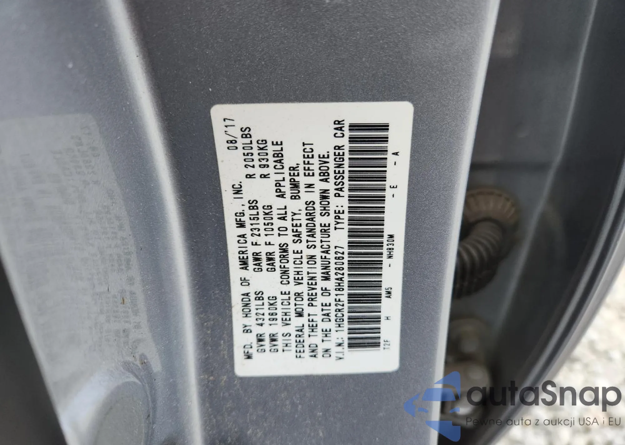 • VIN 1HGCR2F18HA280627