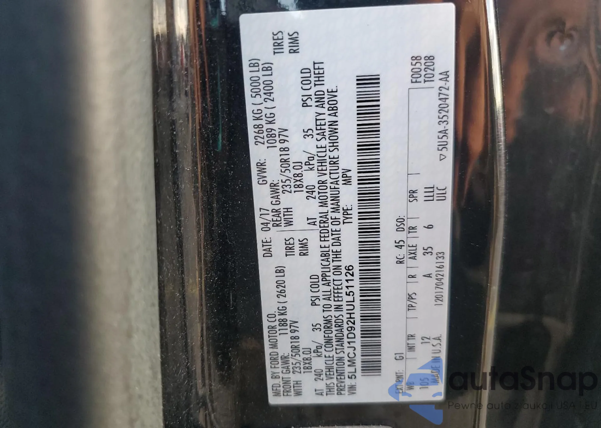 • VIN 1FM5K8D87FGB72150