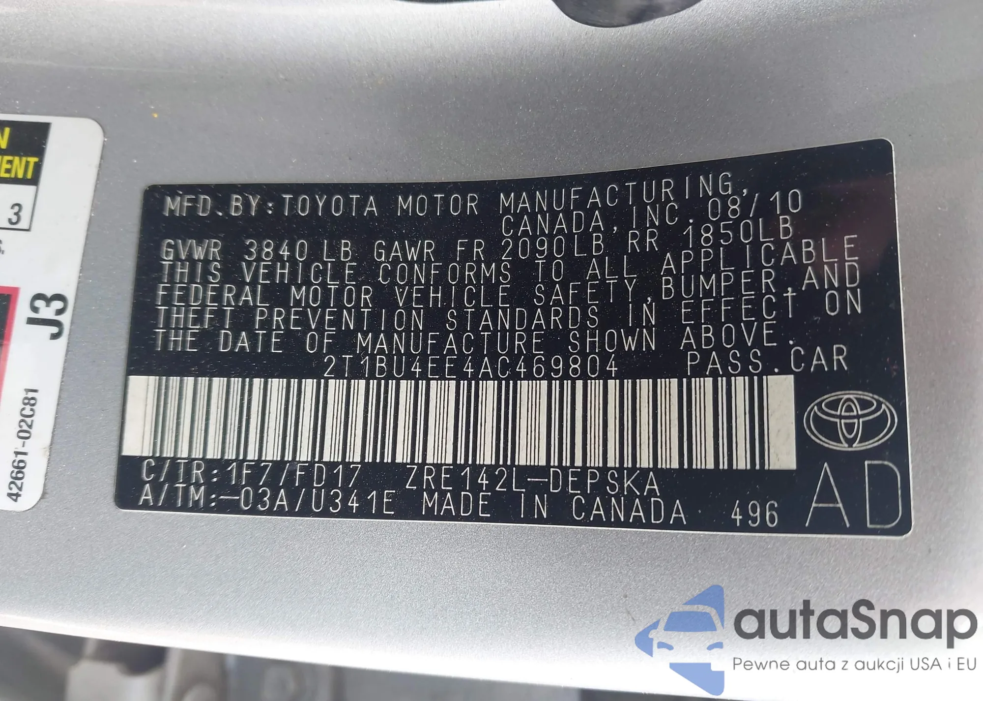 • VIN 2T1BU4EE4AC469804