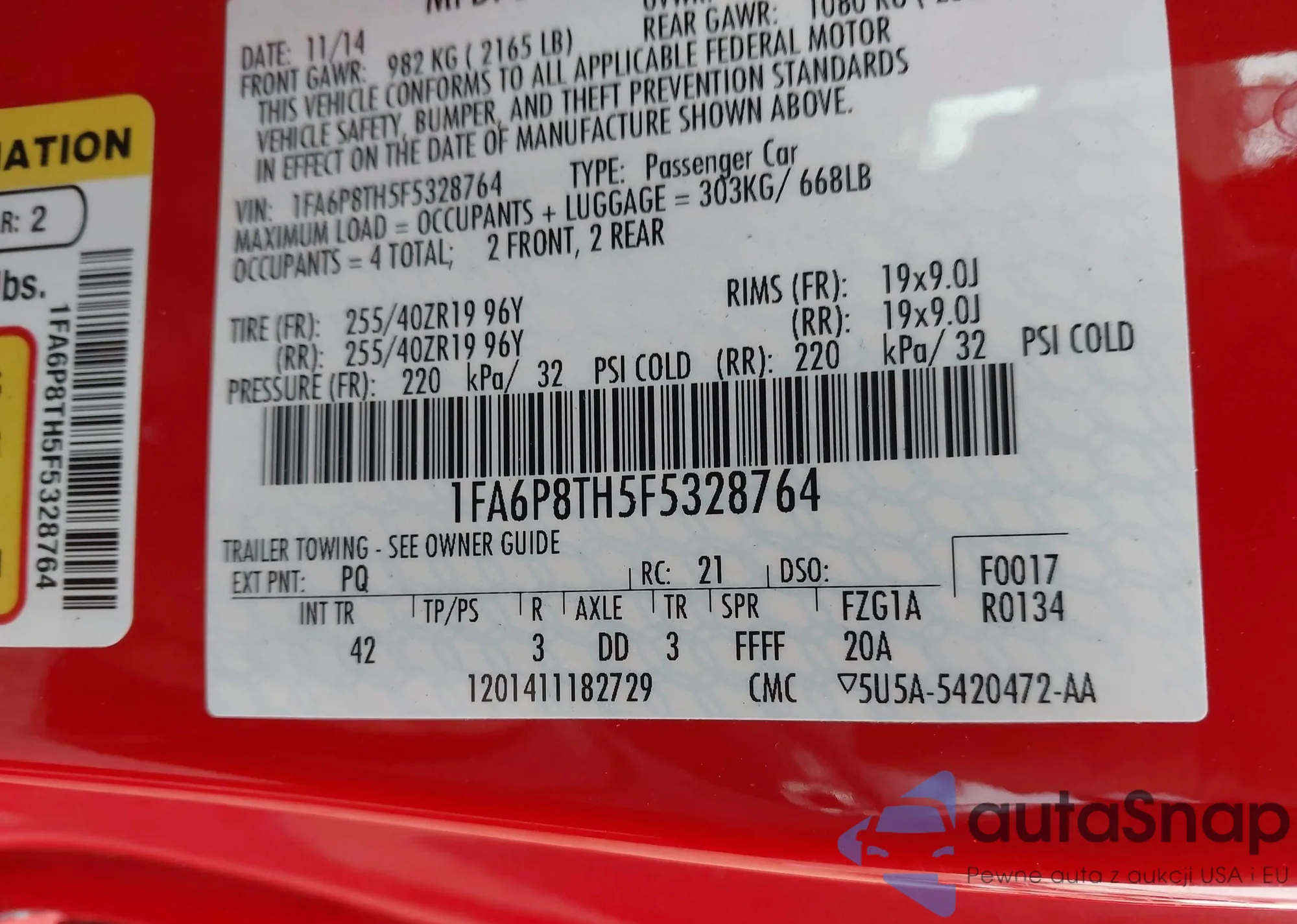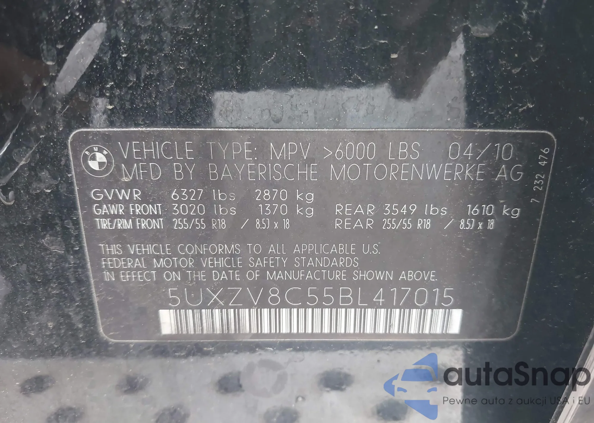 • VIN 5UXZV8C55BL417015
