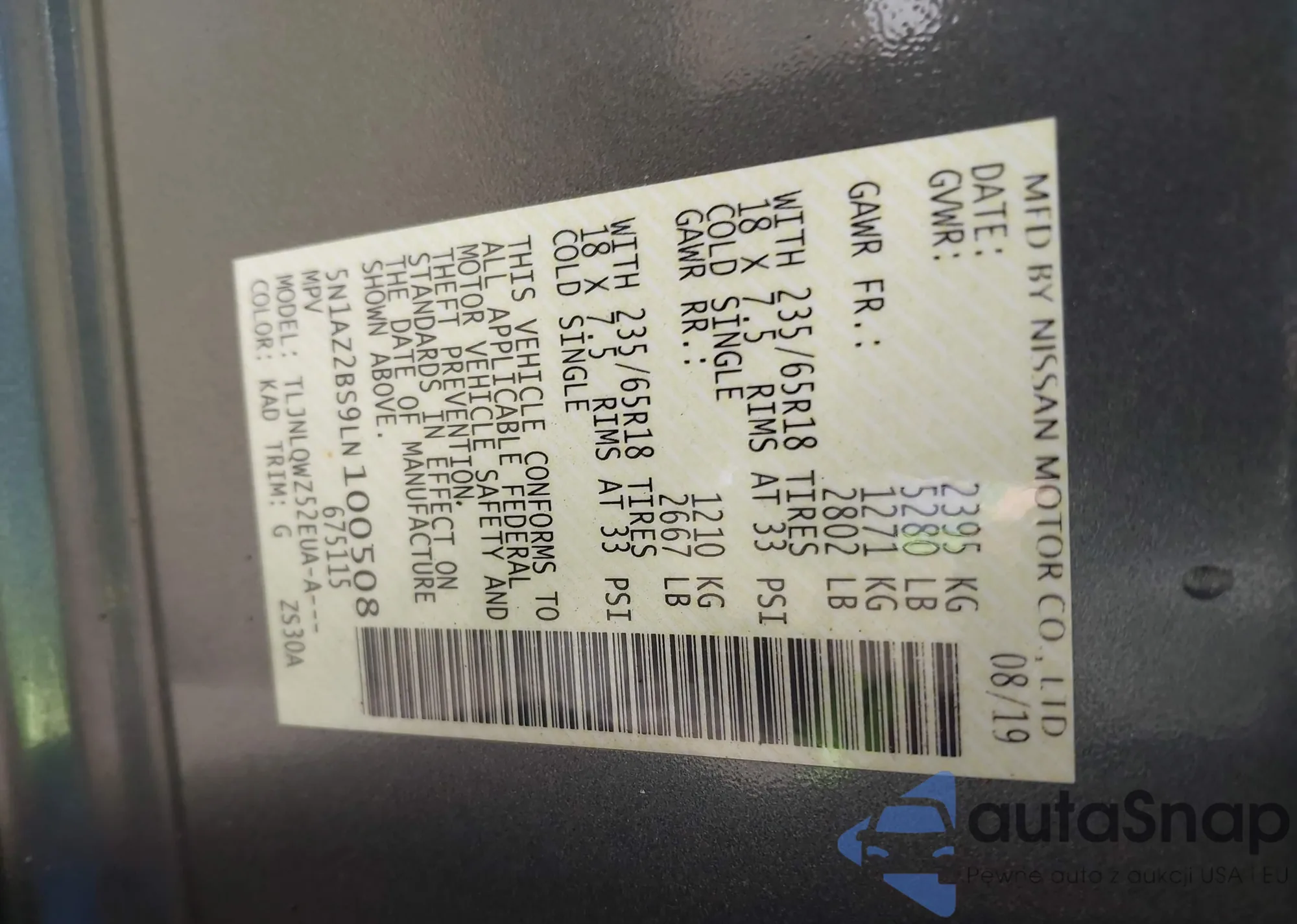 • VIN 5N1AZ2BS9LN100508
