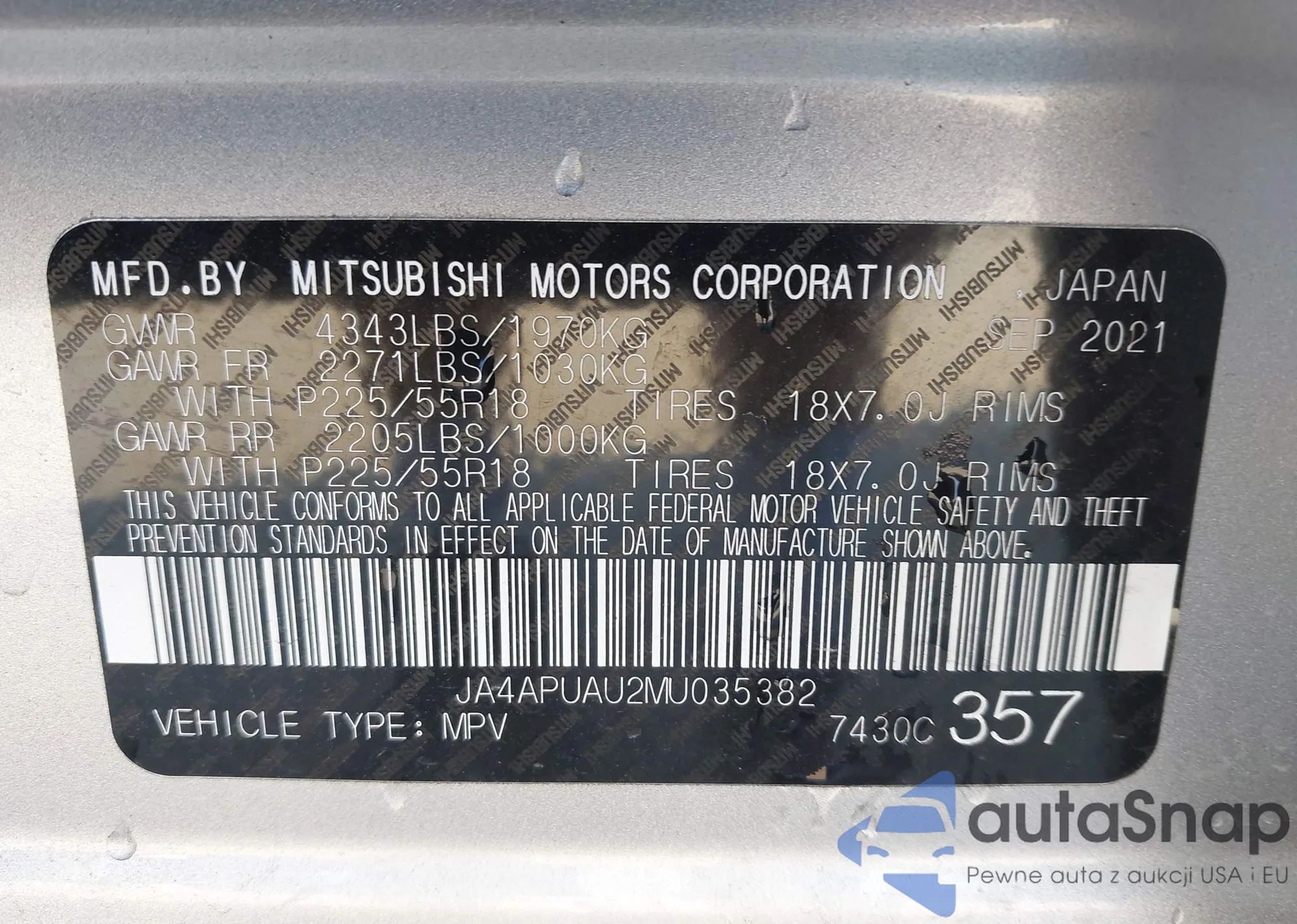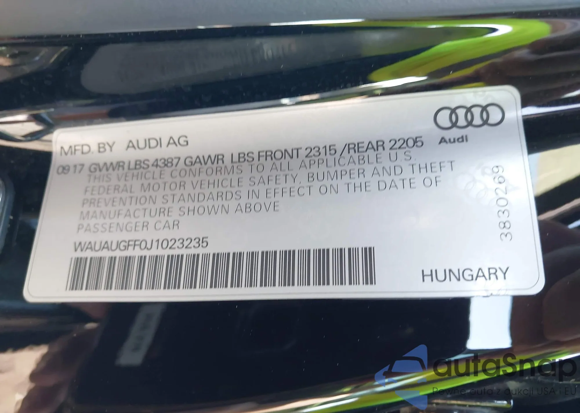 LOT: 43292191 VIN: WAUAUGFF0J1023235