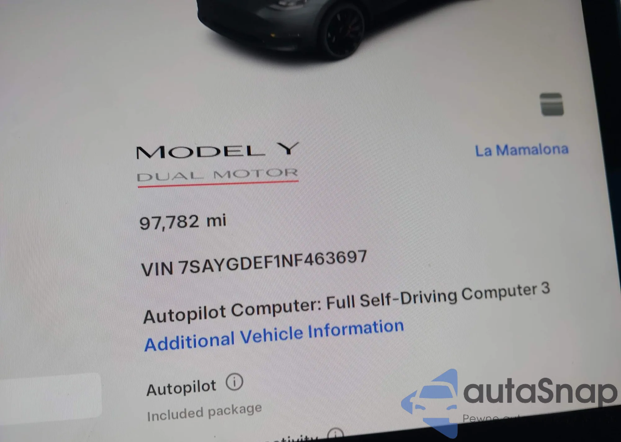 • VIN 7SAYGDEF1NF463697