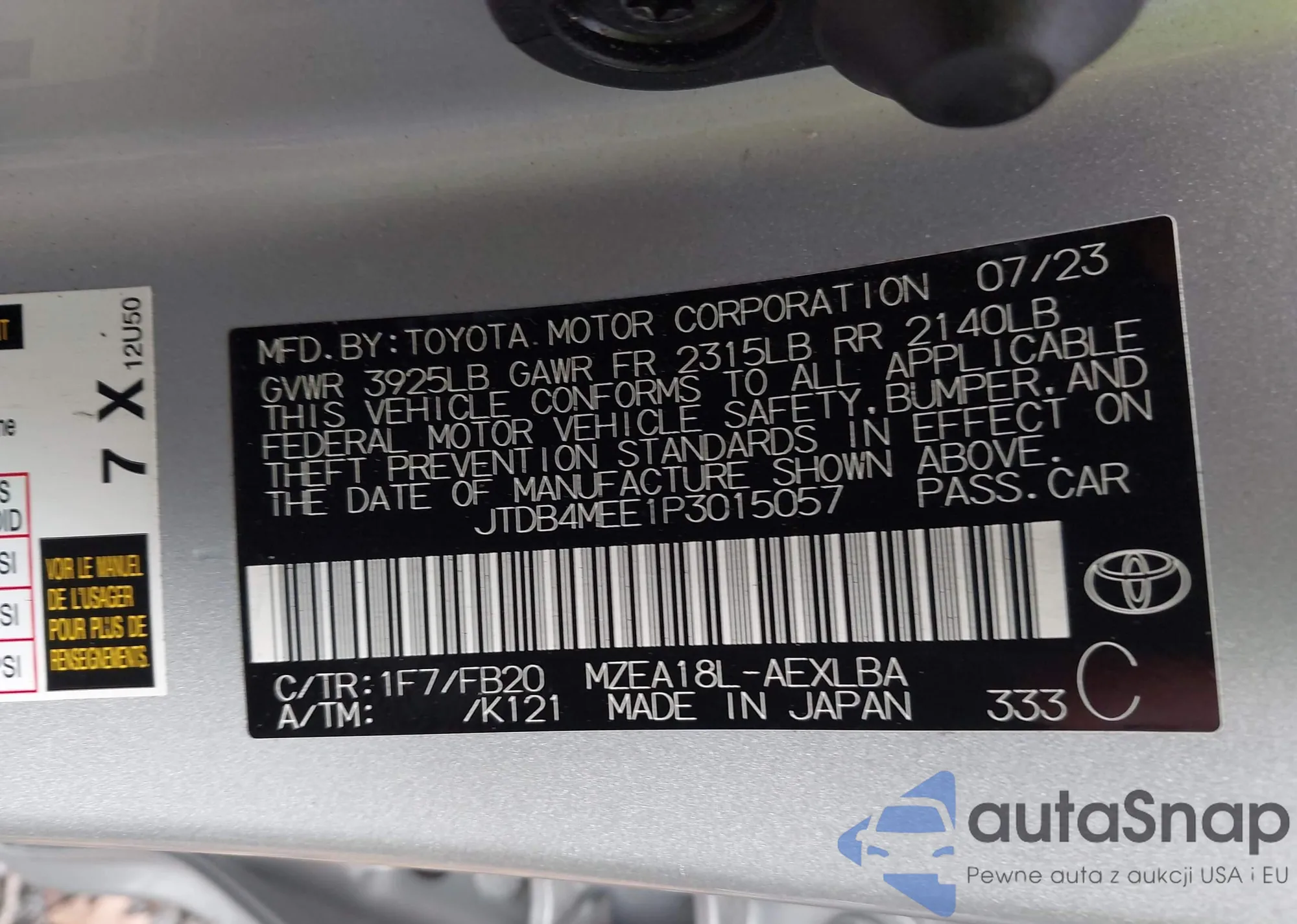 LOT: 43479070 VIN: JTDB4MEE1P3015057