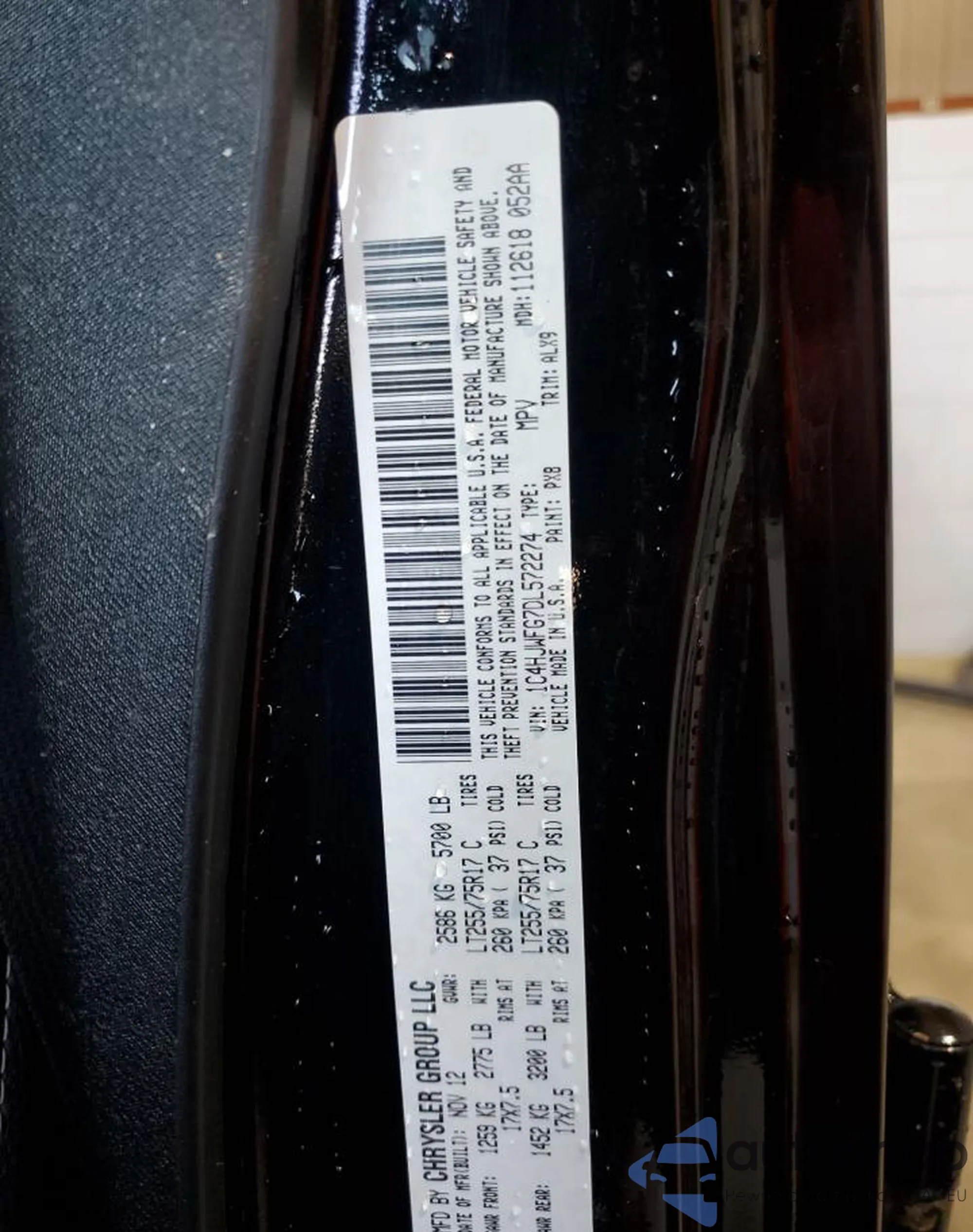 • VIN 1C4HJWFG7DL572274