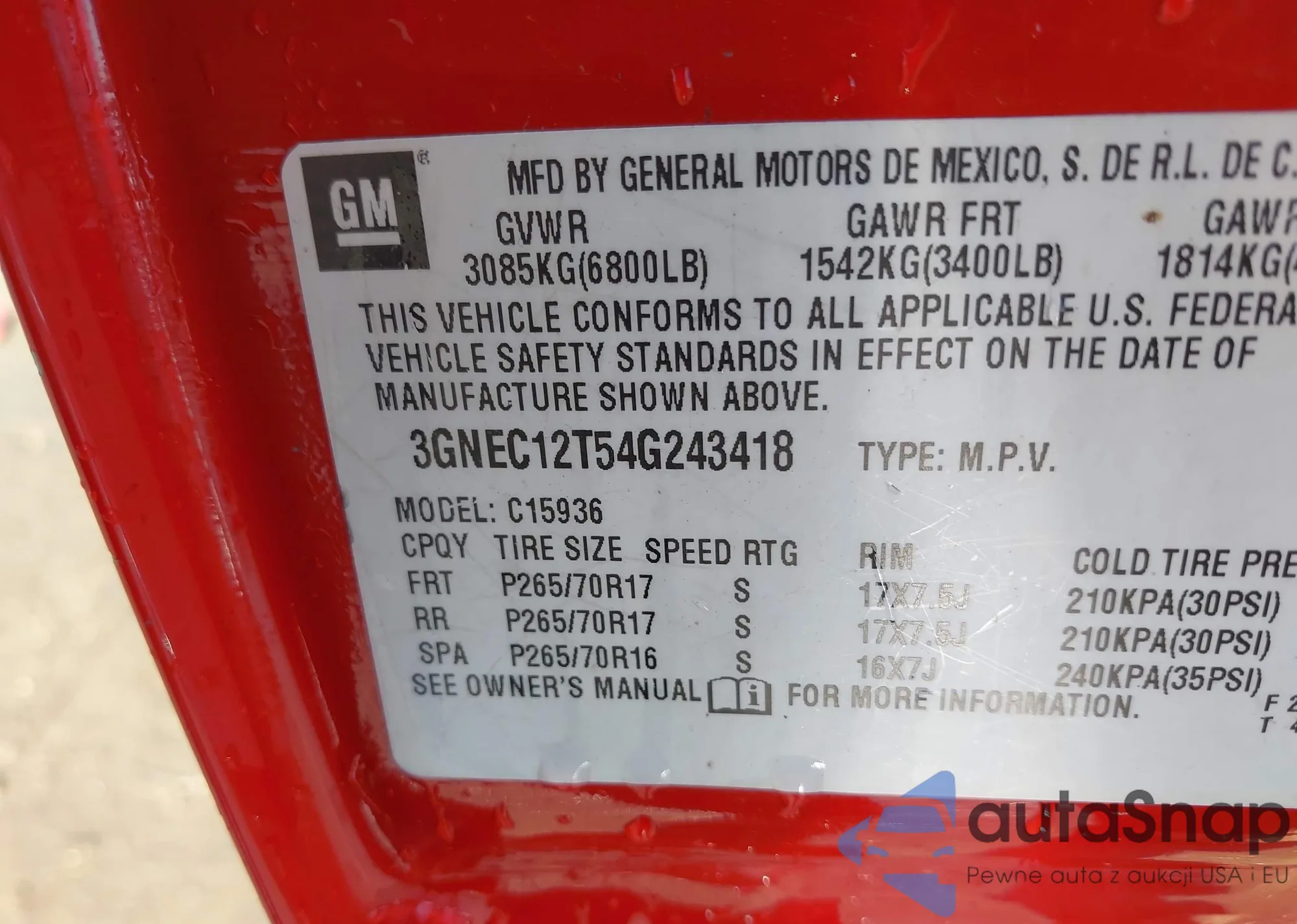 • VIN 3GNEC12T54G243418