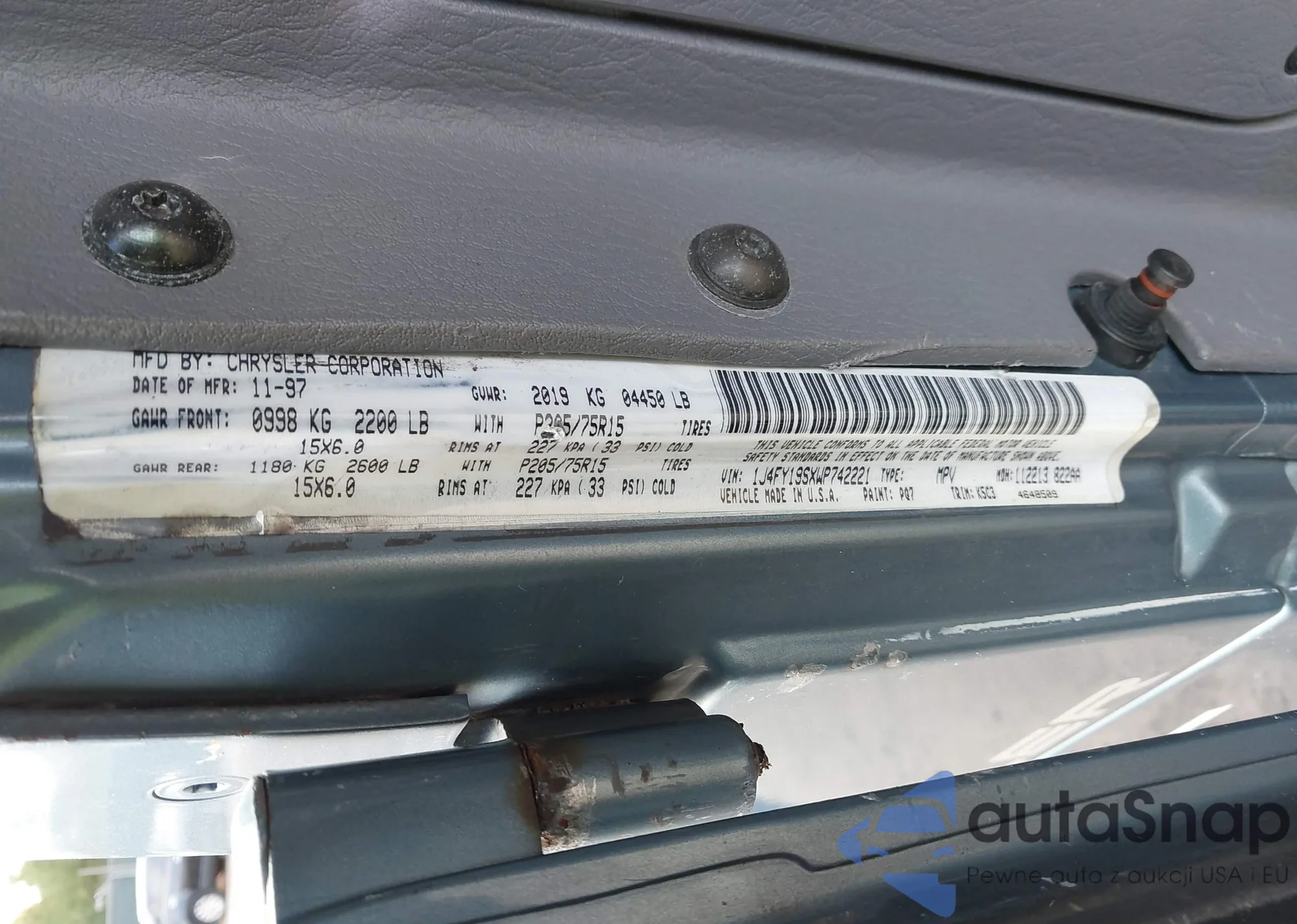 • VIN 1J4FY19SXWP742221