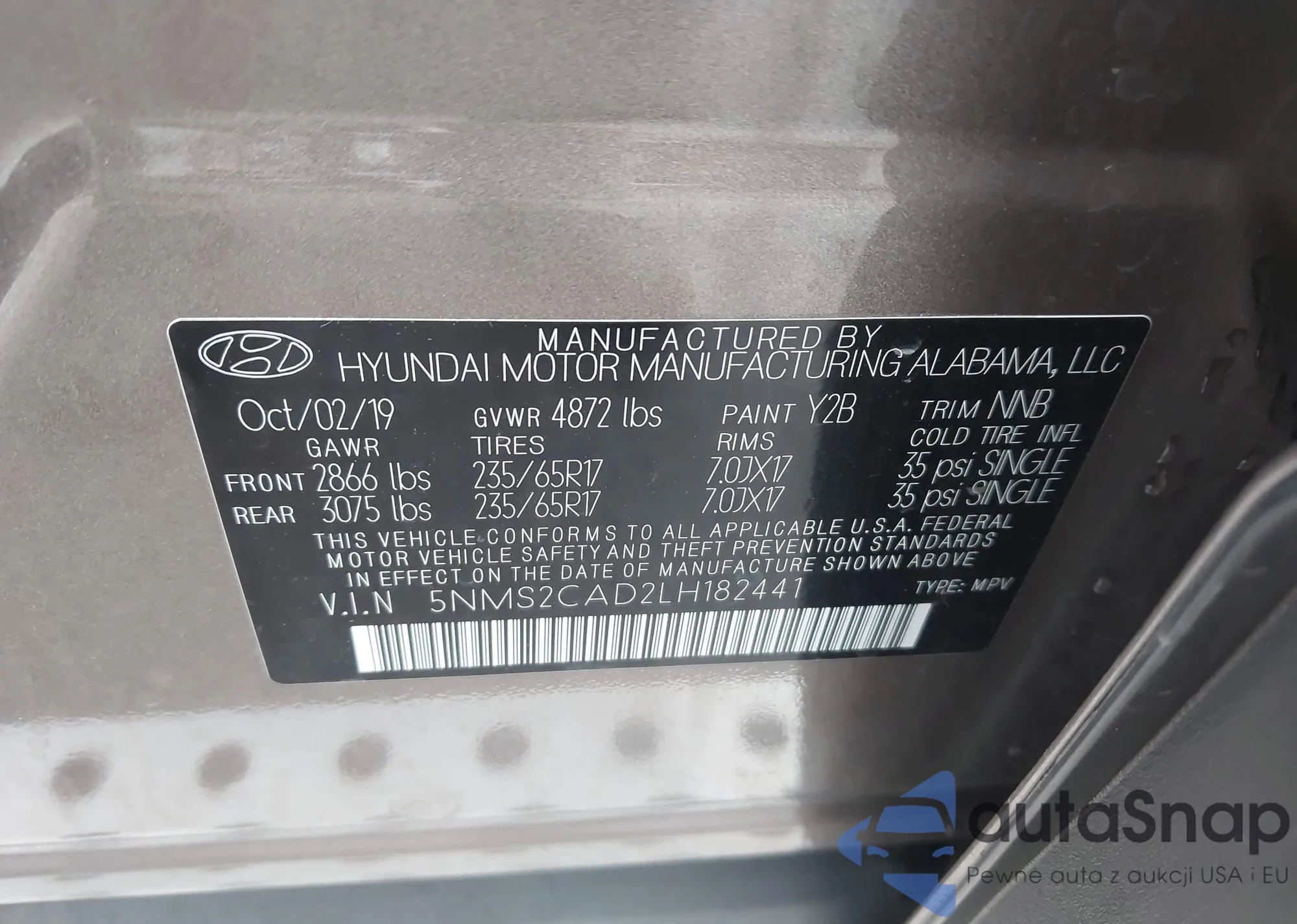 • VIN 5NMS2CAD2LH182441