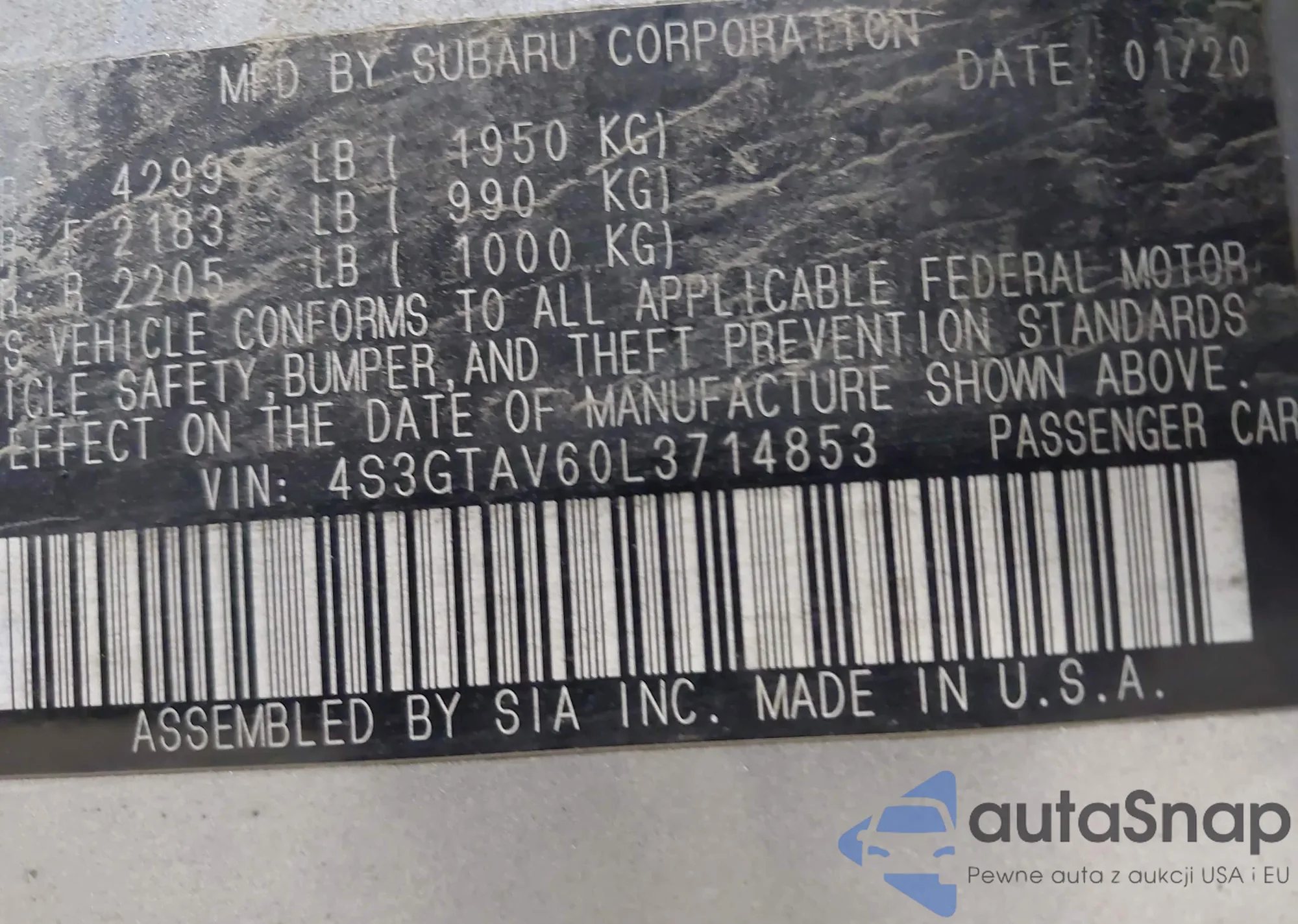 • VIN 4S3GTAV60L3714853